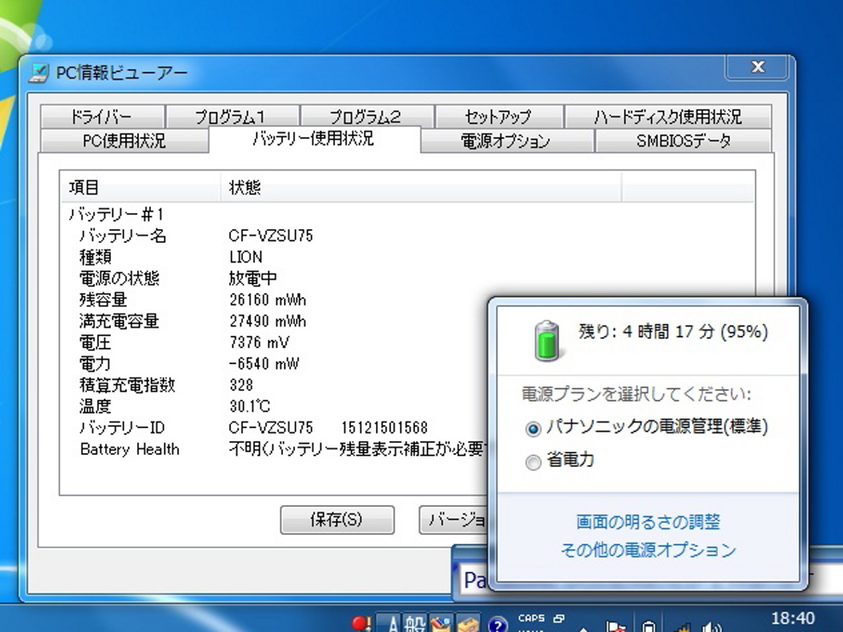 | 商品説明 | パナソニック「Let’s note CF-NX2」 CF-NX2BENBP 第3世代 インテル Core i7-3540M プロセッサー搭載 12.1型(16:9)HD+ TFTカラー液晶(1600×900 ドット) メモリーを8GB(4GBx2)に増量で高速処理がさらに快適 OSはWindows7ですが、64bit版をリカバリしていますので、 増量したメモリもすべて利用可能になっています。 Windows7 ダウングレードモデルになります。 Windows7 Professional SP1 64bitを再インストール済です。 【仕様】 OS Windows7 Professional SP1 64ビット 正規版 プロセッサー インテル Core i7-3540M vPro 動作周波数3.00GHz(最大3.70GHz) メモリー 8GB(オンボード4GB+4GB 空きスロット無し) 光学ドライブ 非搭載 表示方式 12.1型液晶 HD+(1600×900ドット) ストレージHDD 250GB(S-ATA) 無線通信 IEEE 802.11a/b/g/n無線LAN、Bluetooth 4.0 外形寸法 幅295 mm×奥行197.5 mm×高さ25.4 mm(突起部除く) 質量 約1.17Kg(バッテリーパック装着時) ■状 態■ 作成していたリカバリディスクを使用して、Windows7 Professional 正規版を 再インストールしています。(ライセンス認証済) ダウングレードモデルですので、windows8のOSシールのみ貼付されています。 デバイスマネージャーには不明なデバイスは無く、正常に稼動しております。 ハードディスクにリカバリ領域がありますので、初期状態に復帰できます。 BIOSメニュー内にある「コンピュータの修復」を実行するとリカバリ処理が始まります。 リカバリ開始時に、32ビットと64ビットの選択が可能です。 ※リカバリディスクは付属しません。 BIOS起動、設定変更できました。 キーボードの入力できました。 Windows7の初期設定に使用したキーには反応しないキーは ありませんでしたが、全てのキーは確認していません。 タッチパッドの操作できました。 クリックボタンも使用可能です。 無線LANにてアクセスポイントの受信できました。 ※サポート終了OSのため、インターネット接続は未確認です。 バッテリーは充電・起動可能ですが、バッテリーのみでの駆動時間は計っていません。 商品撮影時、95%充電残量で4時間17分使用可能と出ていました。 【バッテリ】 動作確認時点でのバッテリー情報(参考): ・完全充電時の容量:27490mWh ・積算充電指数:328 ※上記バッテリー情報は、使用時間・バッテリー性能を保証するものではございません。 ※ACアダプターは付属しませんので御用意下さい。 簡単に清掃しておりますが、筐体にキズ・汚れなどがございます。 筐体の角やエッジ部分に塗装の剥がれた箇所があります。 目視で確認したところでは、液晶にライン抜けなどの症状は無いようです。 画面等に使用上、支障の無い程度の傷がある場合がございます。 ※Officeソフトはインストールされていません。 ※プリインストールソフトのユーザー登録は未確認ですので、不問にてお願いします。 ※即決落札の場合でも、発送は通常終了の翌日木曜日以降になります。 ※発送までの取り置きは可能ですが、早期発送はできませんので、御注意下さい。 ※現状では動作に問題ないようですが、古い製品ですので、商品到着時点で 起動しない等の初期不良を除き、ノークレーム・ノーリターンと致します。 使用開始後に発生した動作不良には対応できませんので、御了承下さい。 ■この商品に対する注意事項 液晶のドット抜け及び液晶の色むらは、液晶の構造上起こる場合がございます。 初期不良対象外になり、交換致しかねますので、予めご了承ください。 ■付属品 無し ■発送方法■ ゆうパックで発送いたします。 ■お支払い方法■ ヤフー簡単決済 出来るだけ良い物を、出来るだけ良心的な価格で 提供出来ますよう、これからも努力して参ります。 アイテムはドシドシ更新して参りますので、気に入って頂けましたら、 当方のIDをオークションアラートに追加して頂けますと幸いでございます。 最後まで御覧頂きましてありがとうございました。 | |