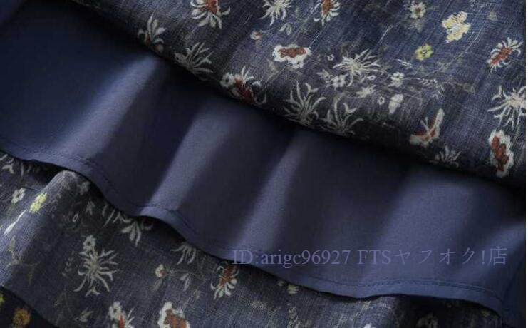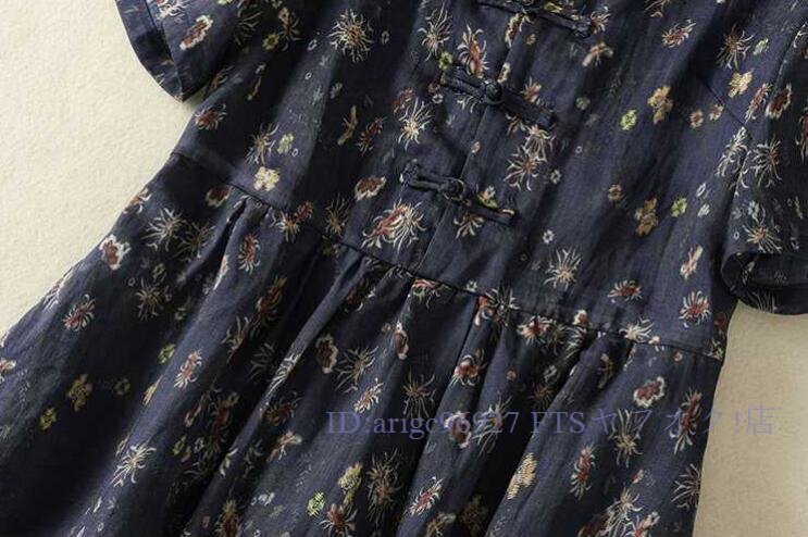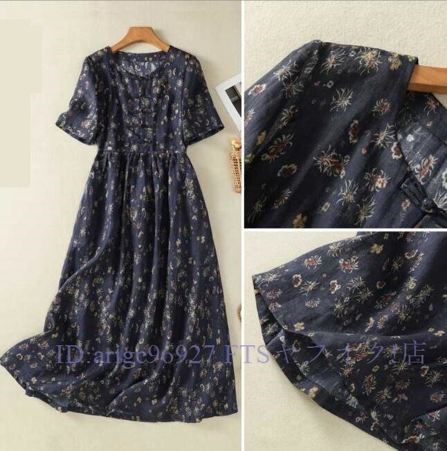 ★新品ワンピース L夏 レトロな 花柄の 盤ボタン 綿 半袖ロングワンピース