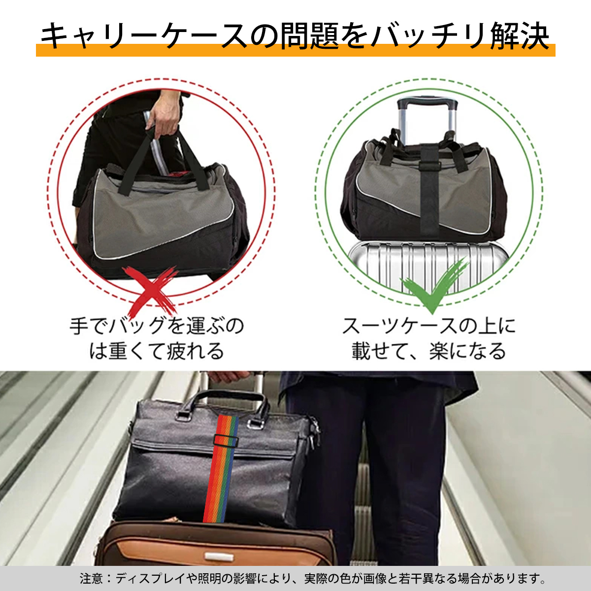 この商品について | 【高強度ウェビング】:高密度の耐摩耗性ナイロン素材で作られており、水の汚れや摩耗を恐れず、耐久性があり、破れにくく、旅行、アウトドア、日常使用のニーズに簡単に対応できます。 【[調節可能なバックル】:調節可能なバックルのデザインを備えており、長さを自由に調整でき、さまざまな荷物に正確にフィットでき、荷物が散乱する問題を解決します。 【高弾性ゴムバンド】:高弾性ゴムバンドは緩まずしっかりフィットし、繰り返し伸ばすことができ、荷物の表面に密着して荷物をしっかりと結束し、輸送の安全性を向上させます。 【ポータブルで軽量】:良い相棒、コンパクトなデザインで持ち運びが簡単で、旅行中に物が落ちることを心配する必要がなく、身軽に旅行でき、旅の楽しみを楽しむことができます。 【多機能吊り下げストラップ】:ハンドバッグ、バックパック、スーツケースを1つに組み合わせることができ、手を解放し、旅行をより効率的にし、さまざまなアイテムを簡単に保管できます。複数のニーズをワンステップで満たします。 |