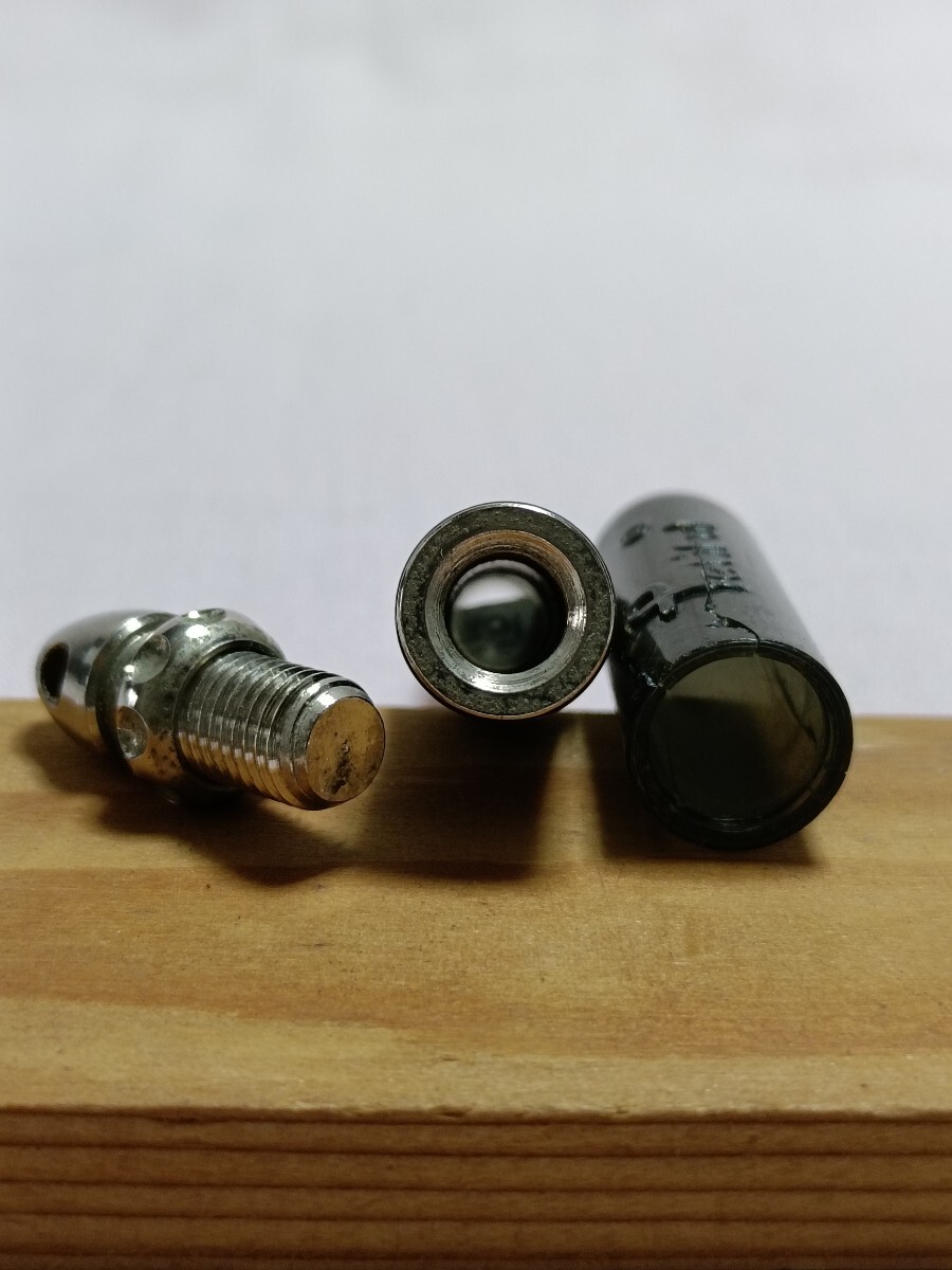 ※難あり;黒キャップ[プラスチック樹脂]縦約40.07mm x 幅径約13mm[内径凸10mm 凹10.06mm]5箇所亀裂(ひび割れ)。キャップがわれてるのでゴソゴソ(ガバガバ)フタ役目してません。プラスチック樹脂ボンド セロハンテープでの補修が必要です。ご了承くださいませ。