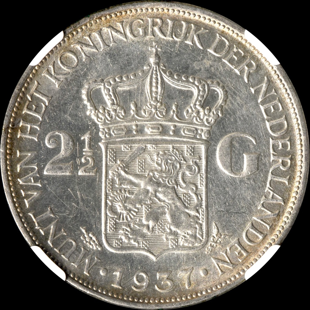 ★土終 【NGC UNC D】1937 オランダ 2.5G銀貨 未使用- //世界コイン 古銭 貨幣 硬貨 銀貨 金貨 銅貨【決済期限火曜日】