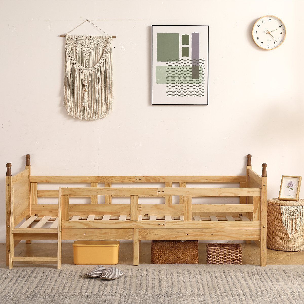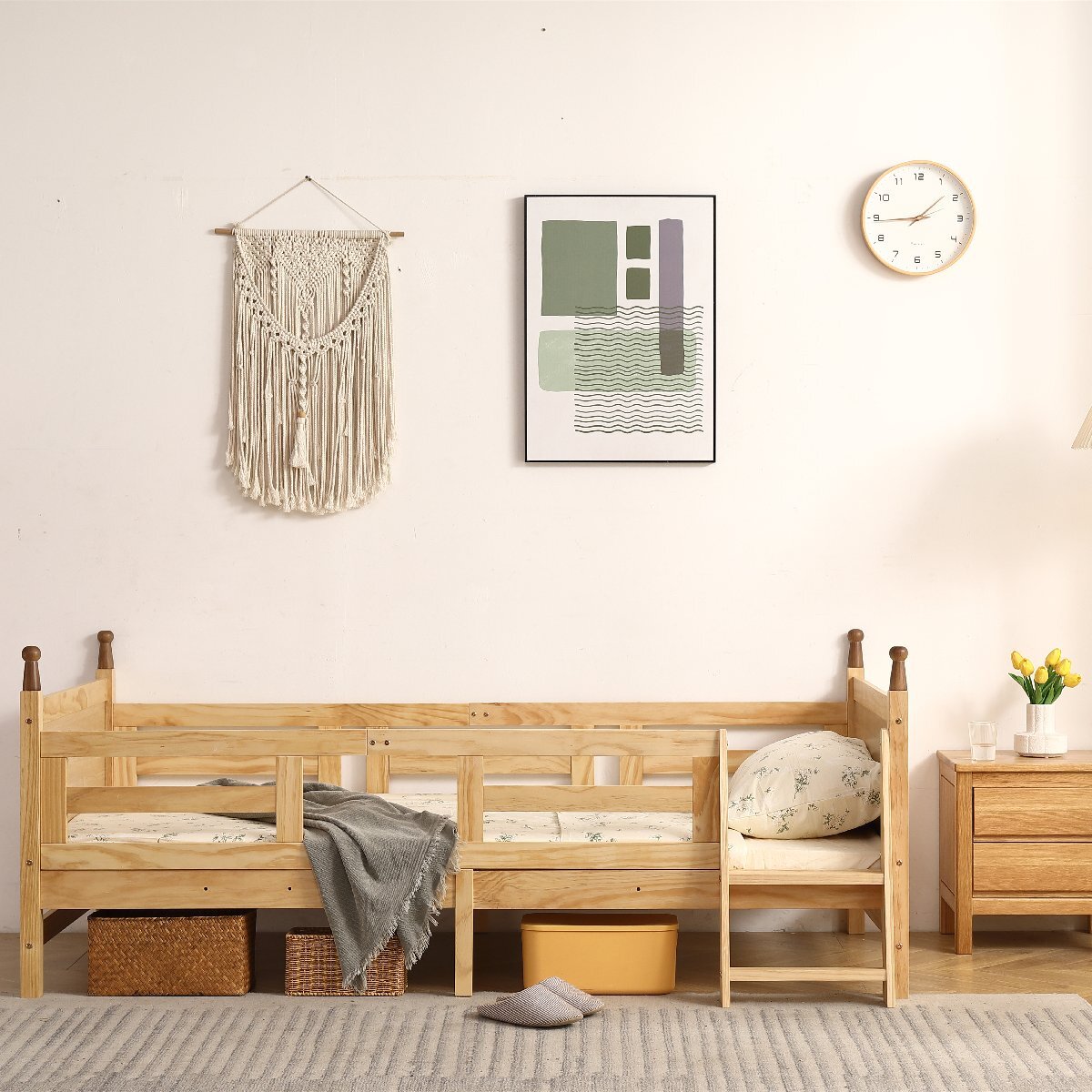 • 1.【 シンプルなデザイン】高品質な木材を厳選し、シンプルで特色を失わず、独立性と実用性に優れており、自然に親しむ色も空間格調に明るく優雅で、柔らかな印象を与え、寝室に温かく心地よい雰囲気をもたらし、大人も子供もより安心な睡眠を与えます。