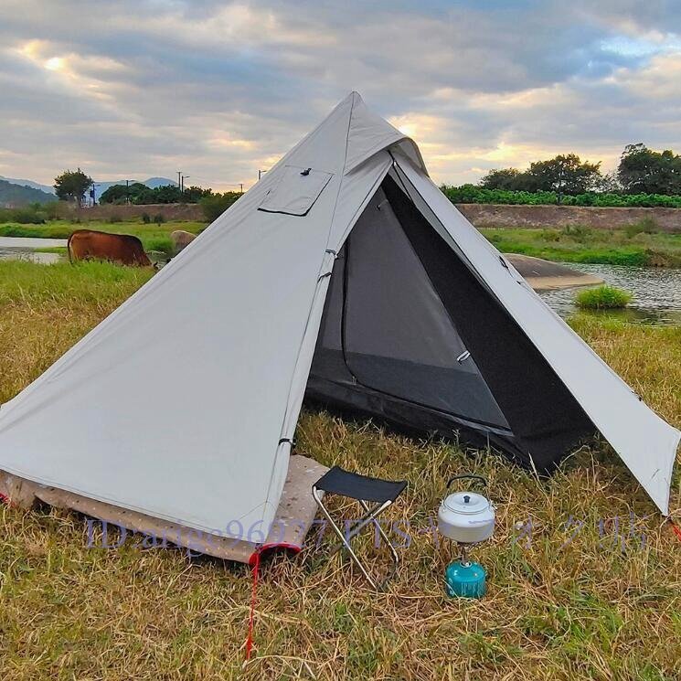 キャンプ用 超 限定ミドリ ピラミッドテントワンポールテント超軽量2.6kg 210T 防水3000+設営簡単ソロキャンプアウトドア 野外登山黒