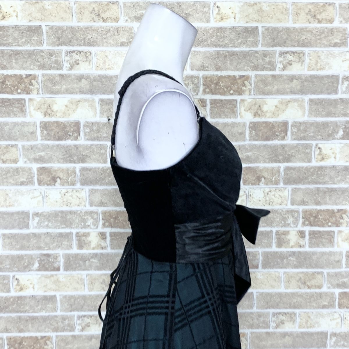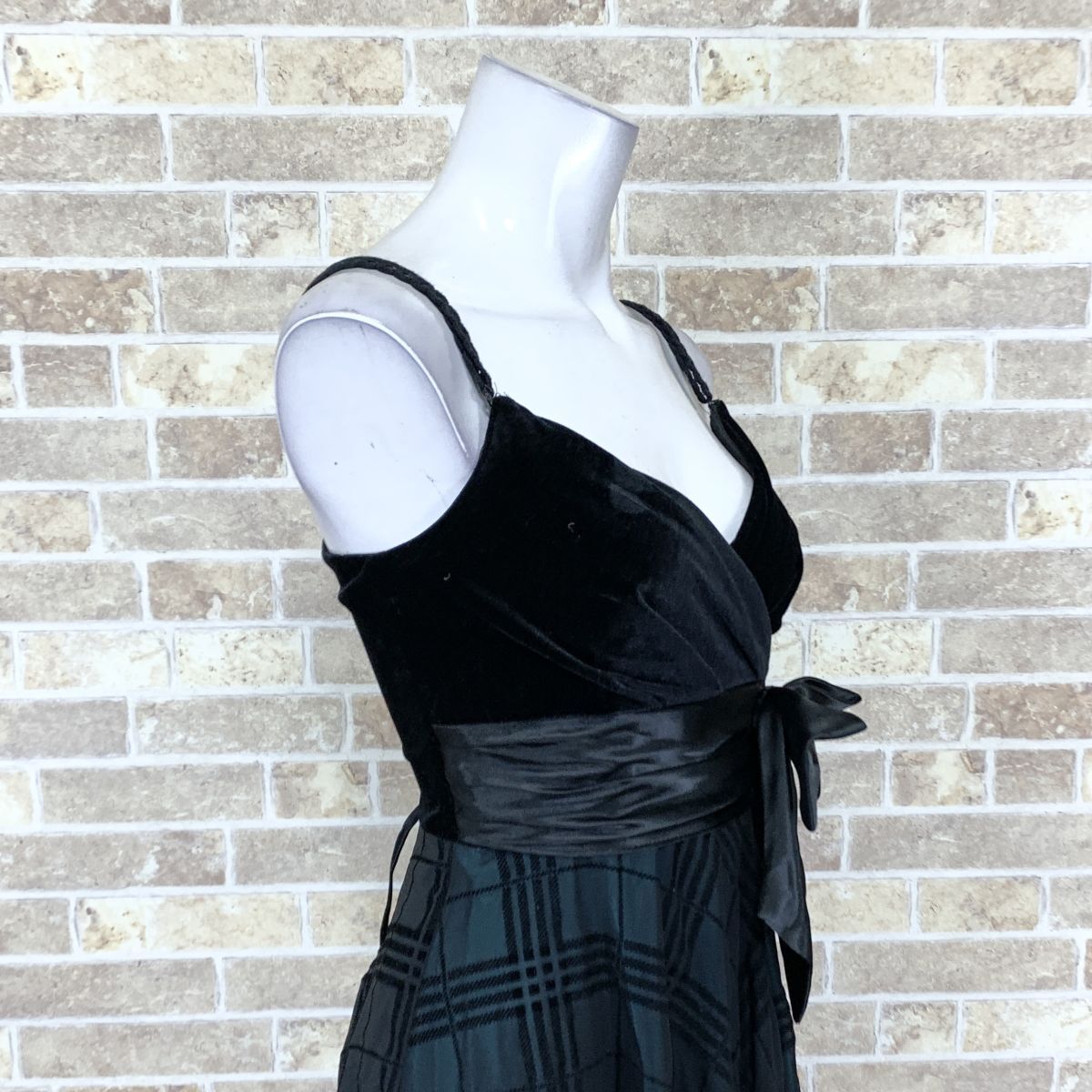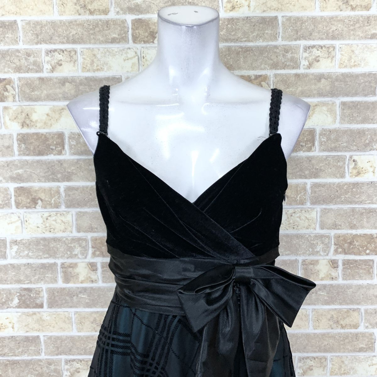 1円 ドレス ASHILL ワンピース 9AR ベロア黒中生地緑系 カラードレス キャバドレ 発表会 イベント 中古14393