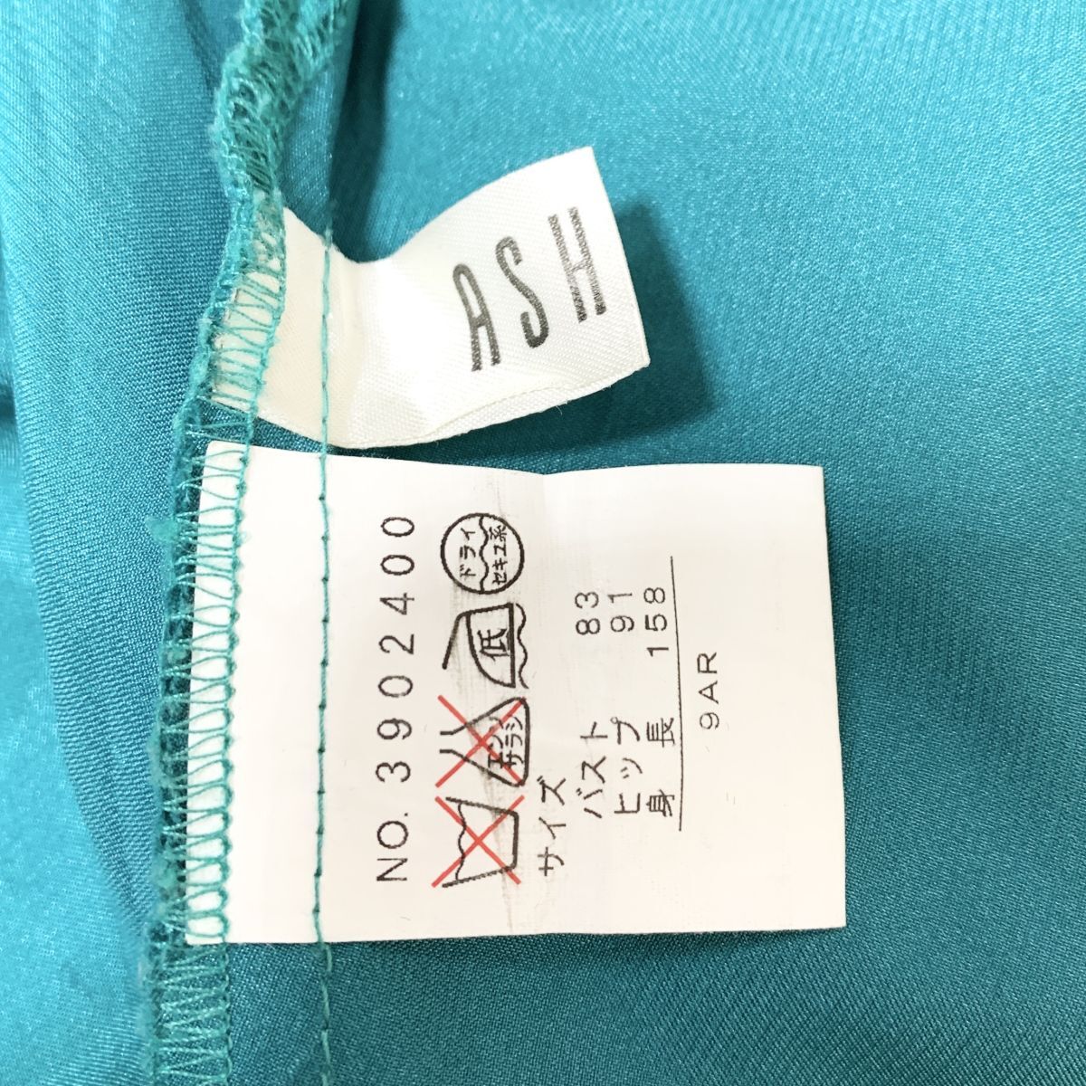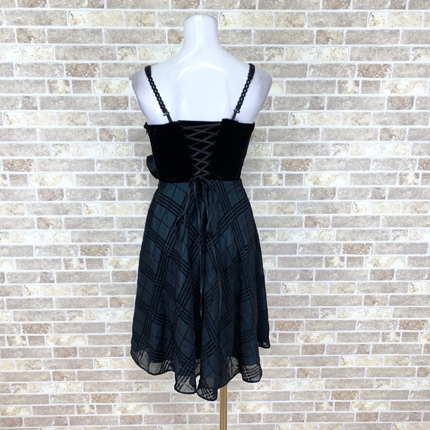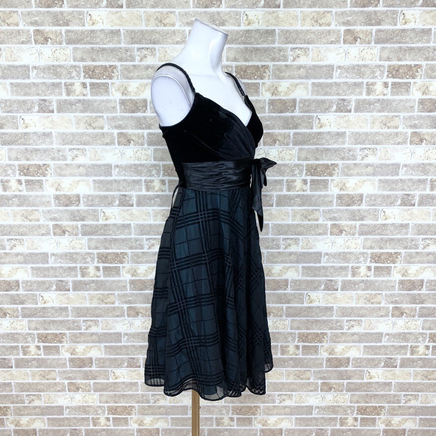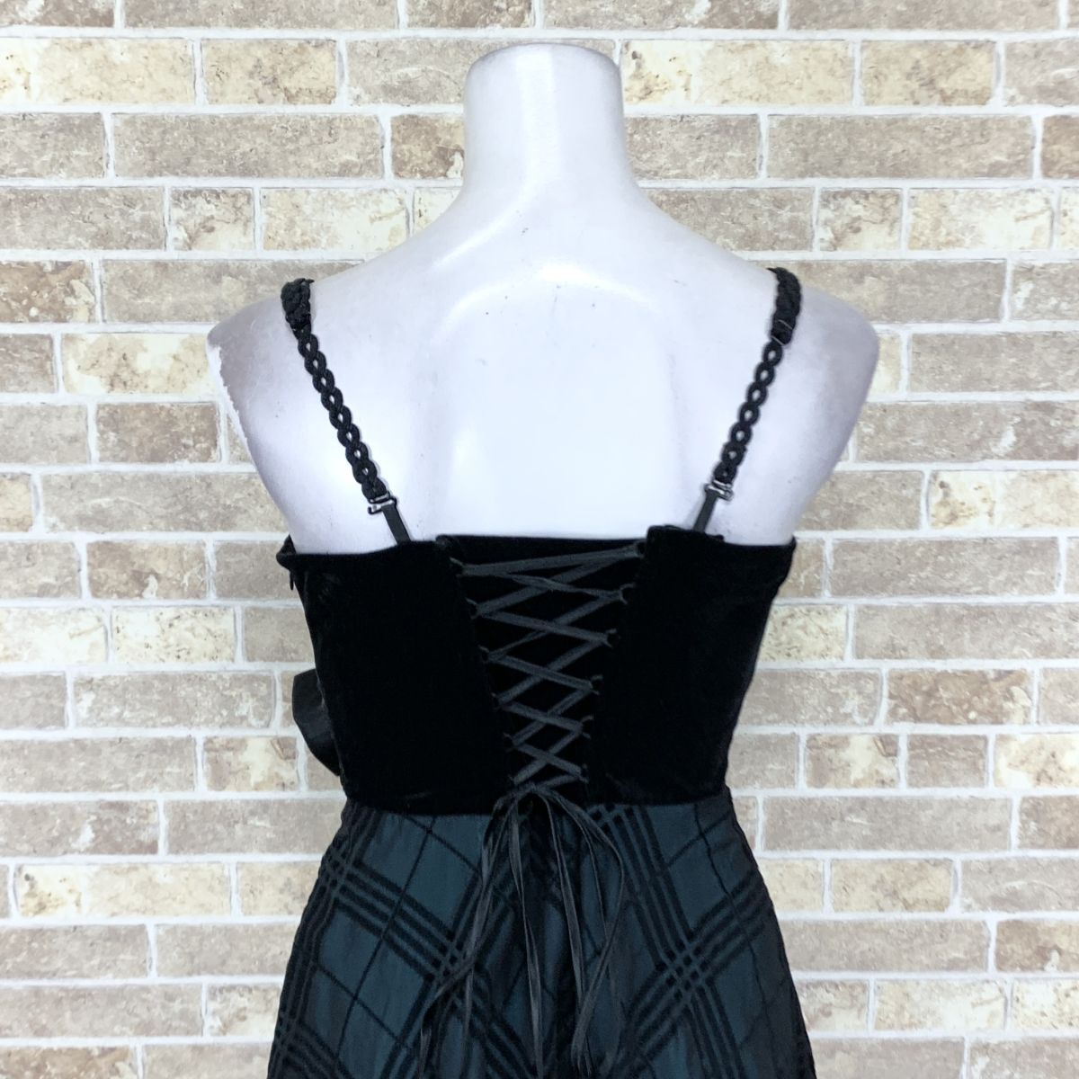 1円 ドレス ASHILL ワンピース 9AR ベロア黒中生地緑系 カラードレス キャバドレ 発表会 イベント 中古14393