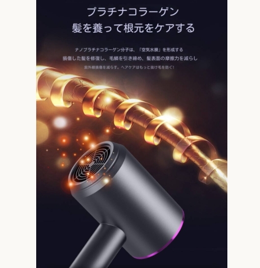また、NTC過熱保護装置が付き、ヘアドライヤーが危険な温度まで上昇すると自動的に電源を中断することになって危険を免れます。