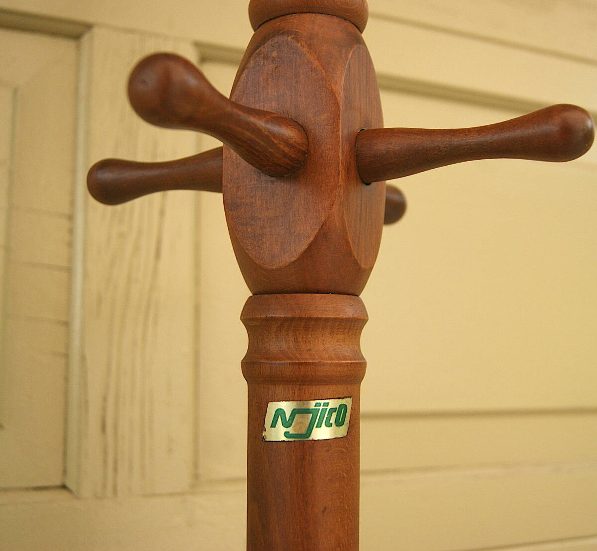 6357【ジャパンビンテージ☆ナジコ Najico 木製 ポール スタンド ハンガー ラック】コート 帽子 アンティーク ヴィンテージ 希少モデル◎