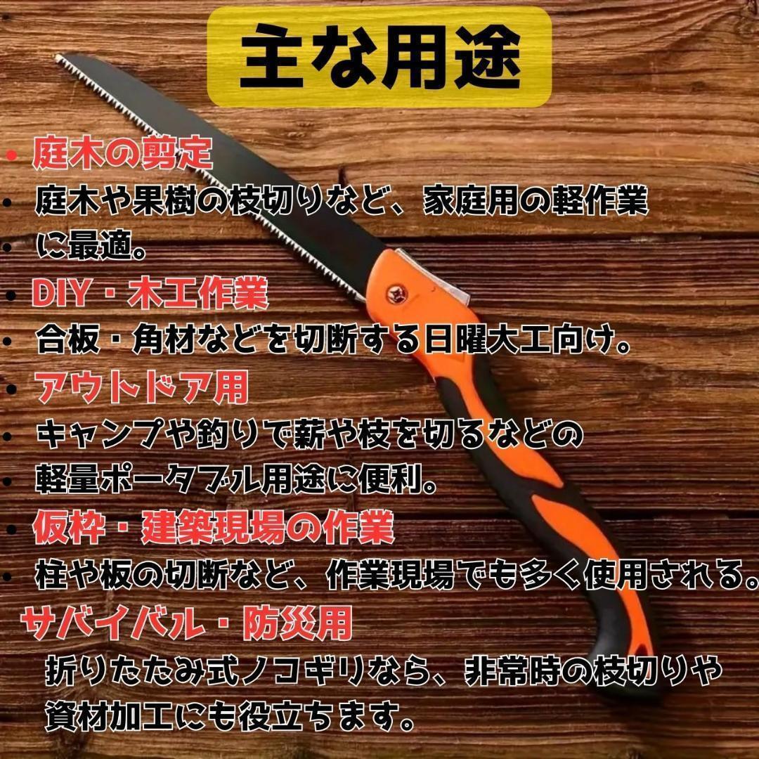 庭木の剪定や生木の切断用、仮枠作業などにもお使いいただけるポータブルのこぎりです。