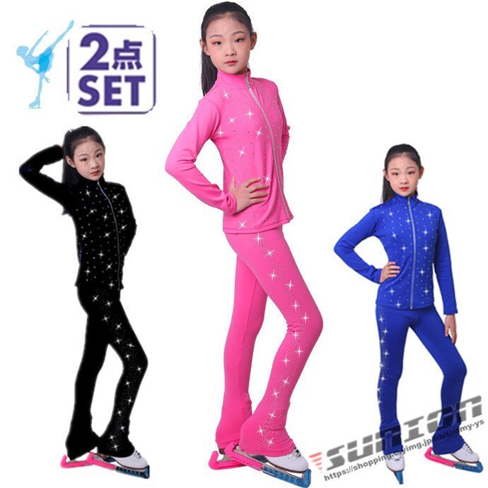 フィギュアスケート スケートウエア アイスフィギュアスケート 女子 アイススケート ジャケット ズボン 2点セット ストレッチ フ