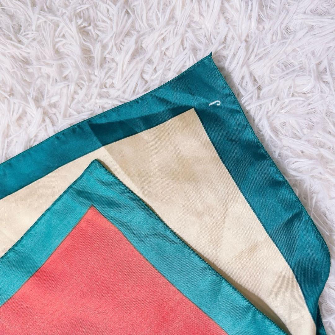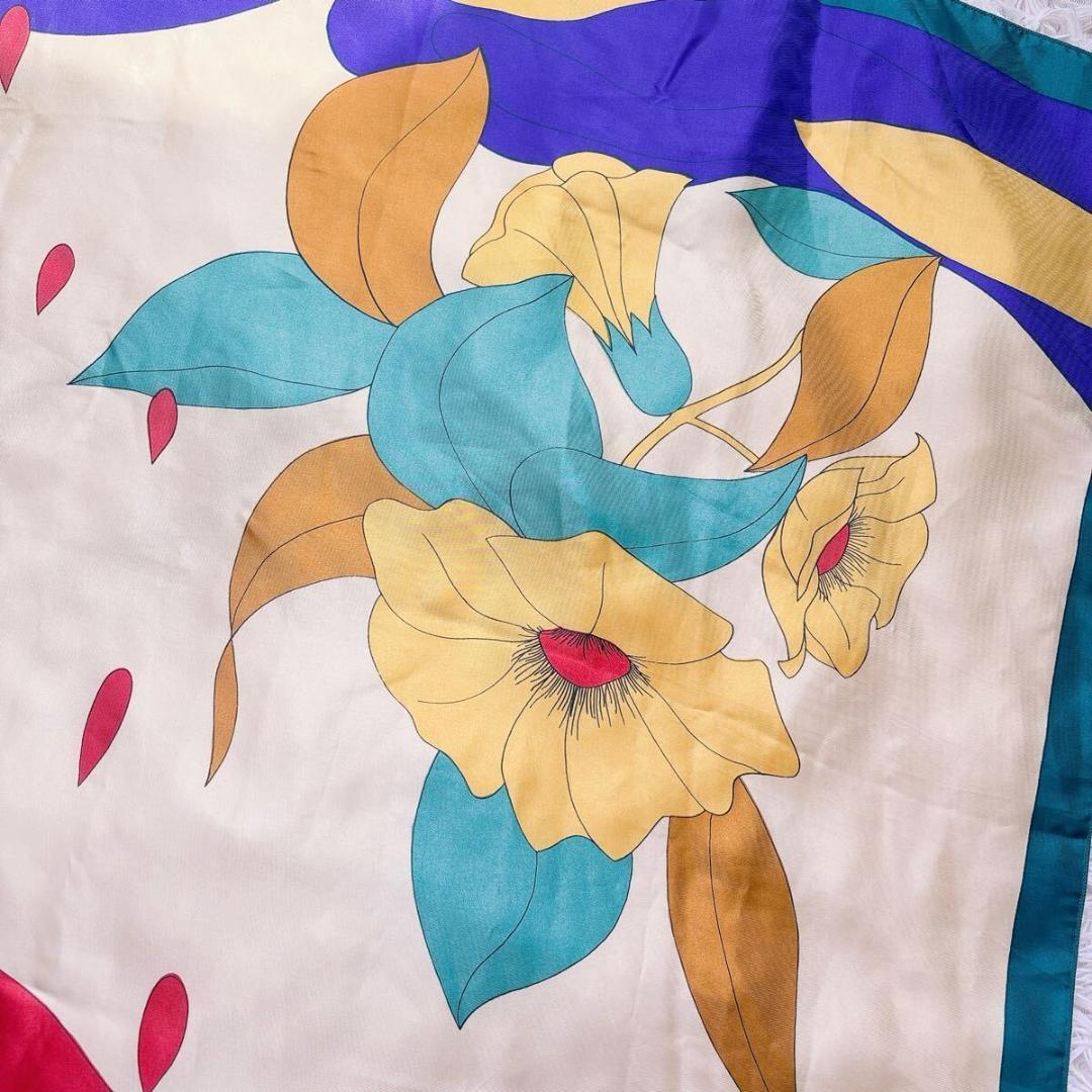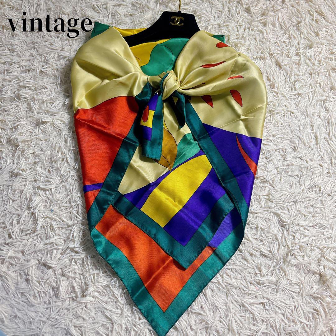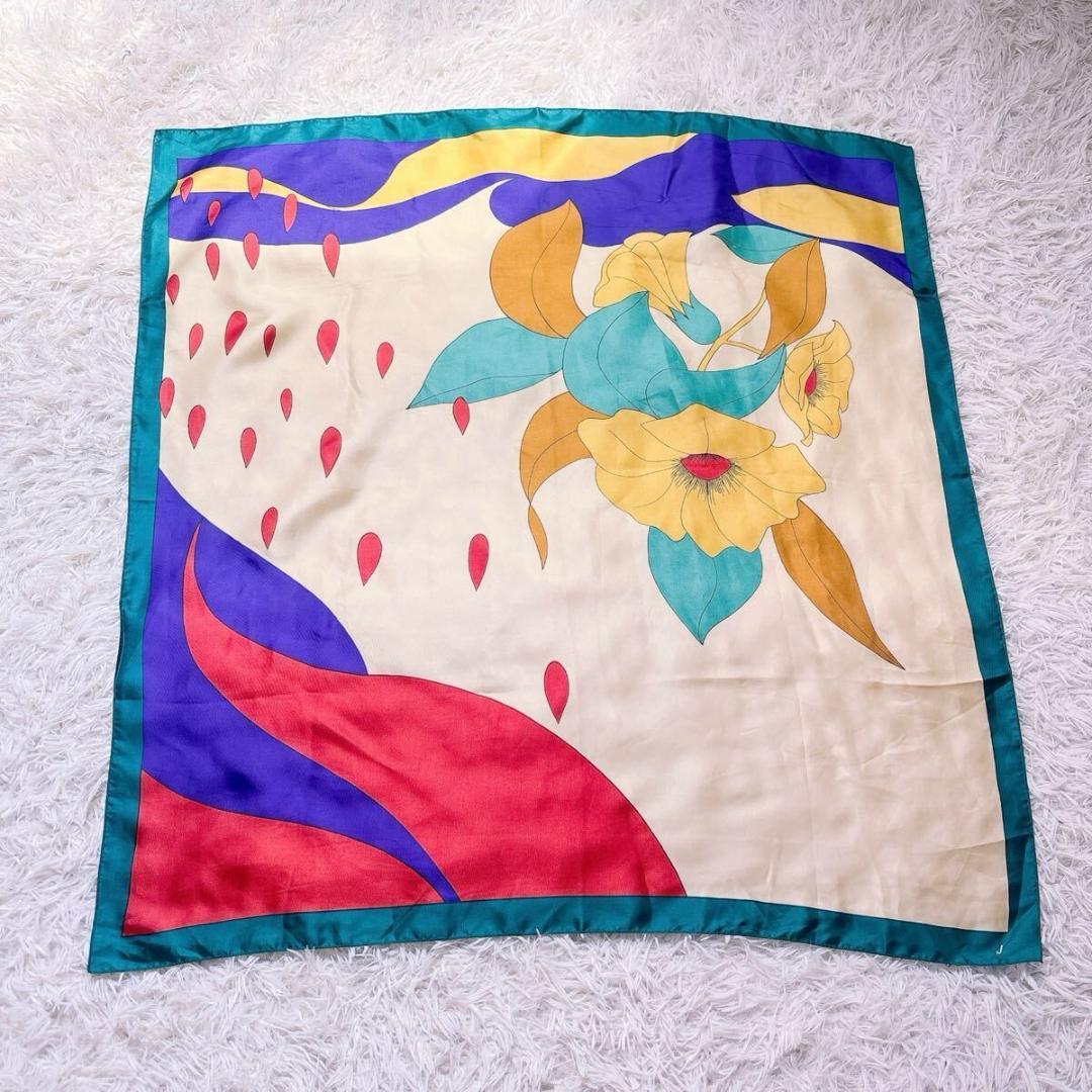 美品 シルク調 シルクキー素材スカーフ バンダナ ショール 大判 カバン 通勤 オフィスカジュアル 上品 高級感 総柄 マルチカラー ヴィンテージ ビンテージ vintage オールシーズン レディース 華やか きれいめ 1点もの