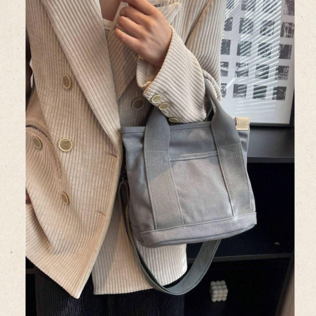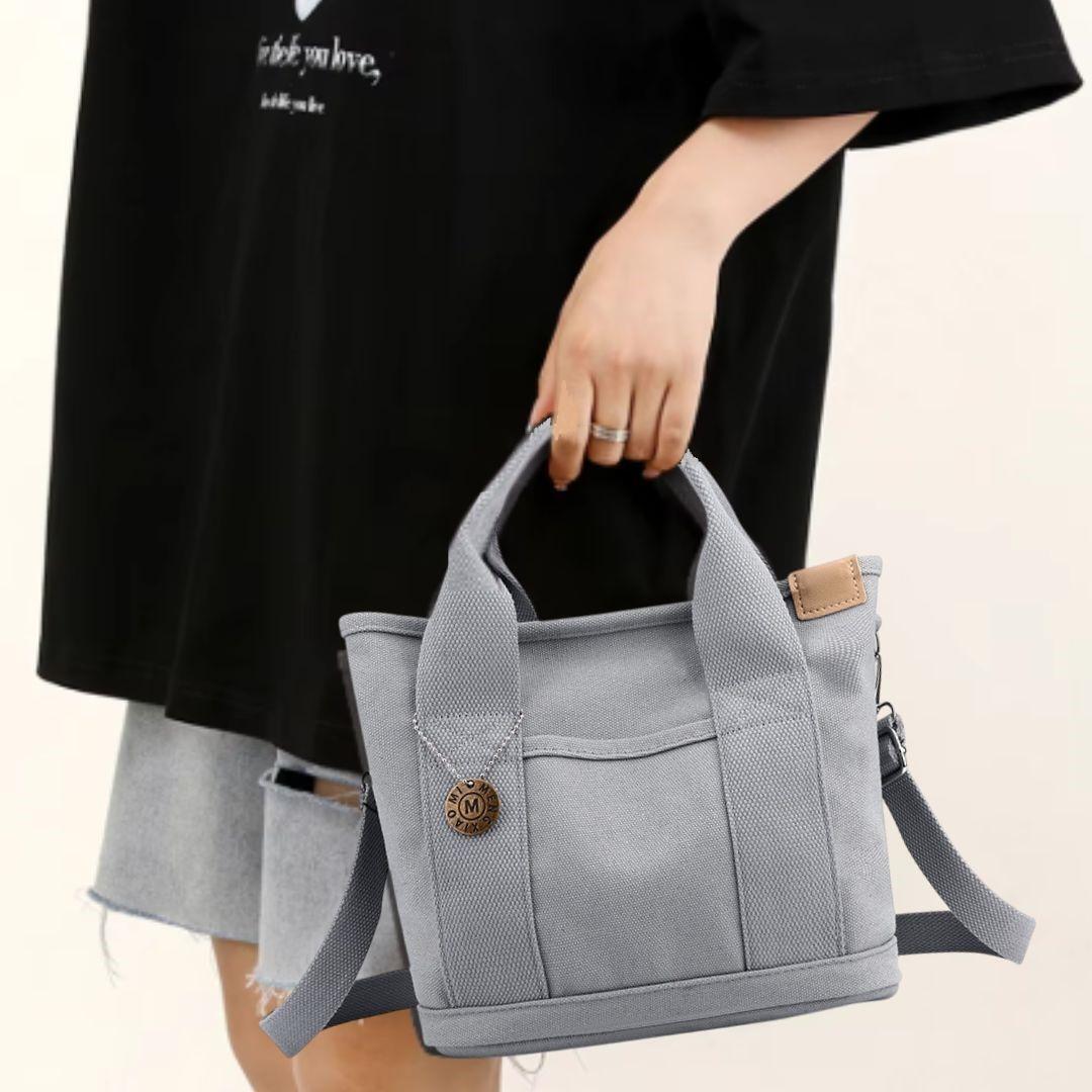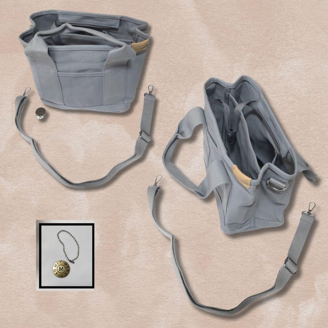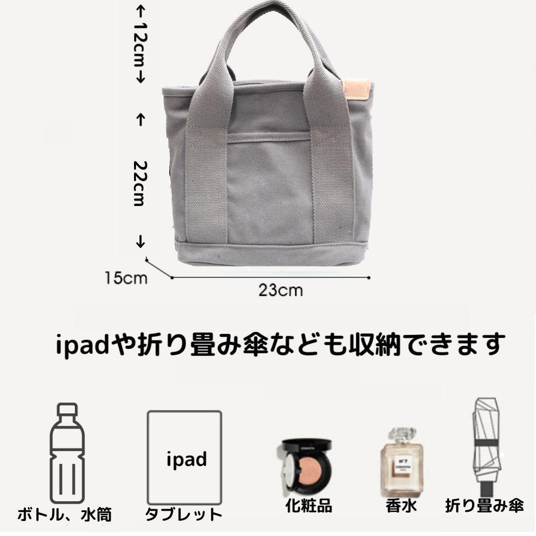 買い物、外出、散歩、通勤、通学など、小物類やお弁当箱を入れるのに最適なミニトートバッグの2WAYショルダーストラップ付き