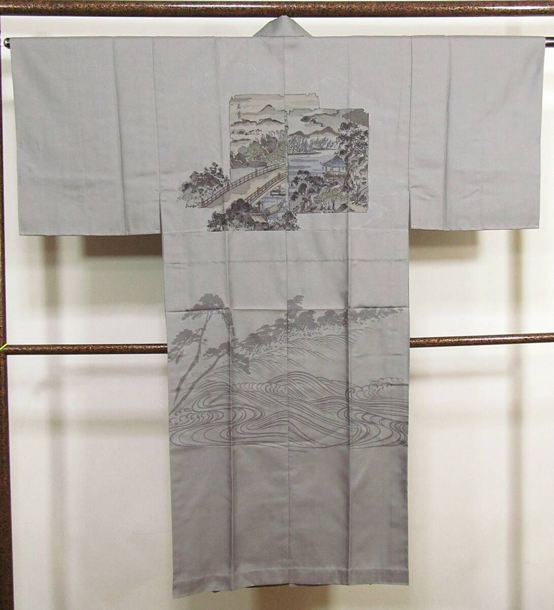ひ17 化繊 男性用 胴衣抜き袖無双 長襦袢 浮世絵風柄 身丈134cm じゅばん