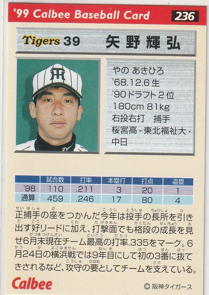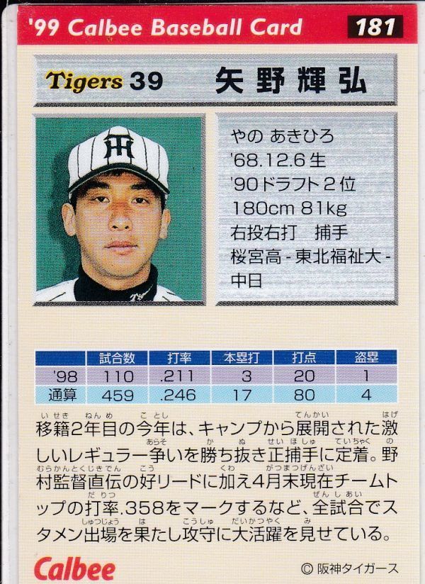 ●1999カルビー 【矢野 輝弘】 BASEBALL CARD No.181:阪神