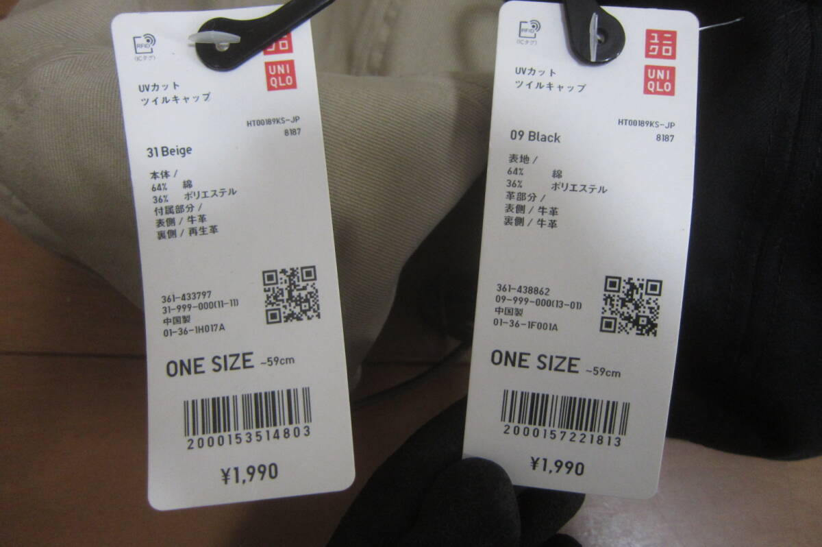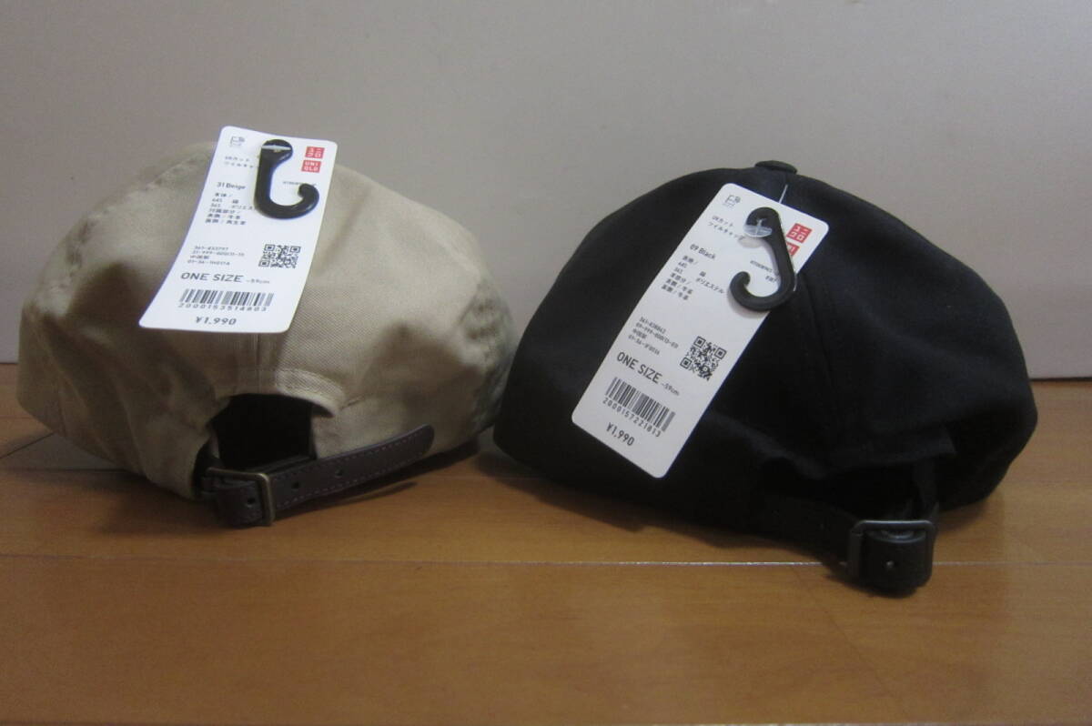 新品B品 UNIQLO ユニクロ 帽子2個セット キャップ ベルトアジャスター サイズ56-59㎝位 ベージュ 黒 O2509C