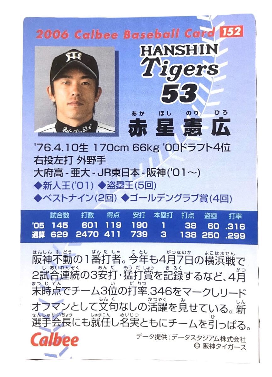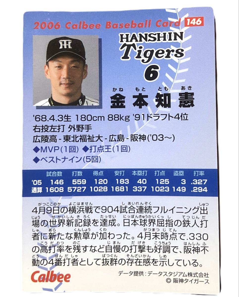 2006年のプロ野球チップスカードの阪神タイガース金本知憲・赤星憲広選手となります。