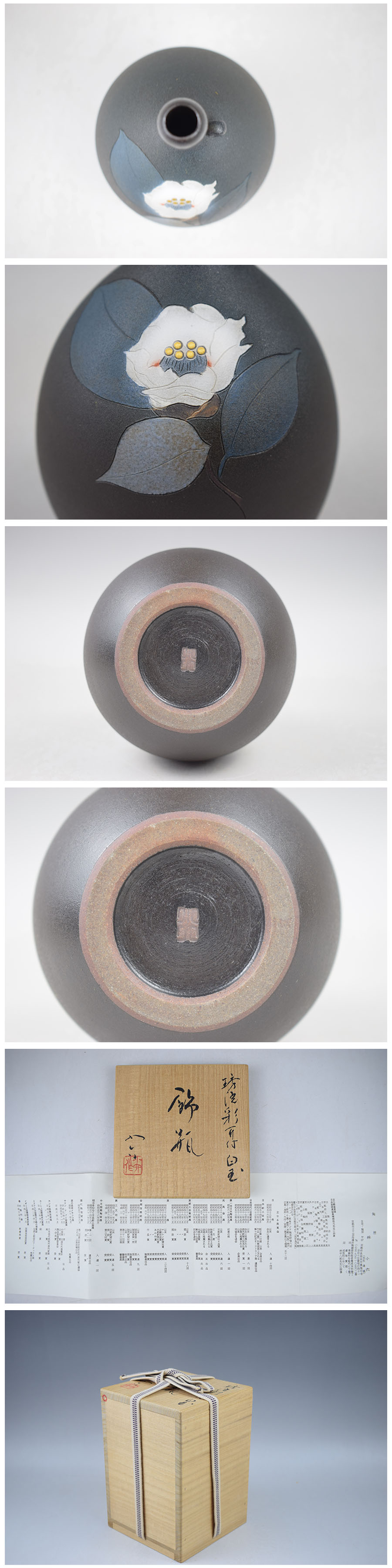 G589 林小六 京焼 琇洸彩耳付白玉飾瓶 共箱 真作保証