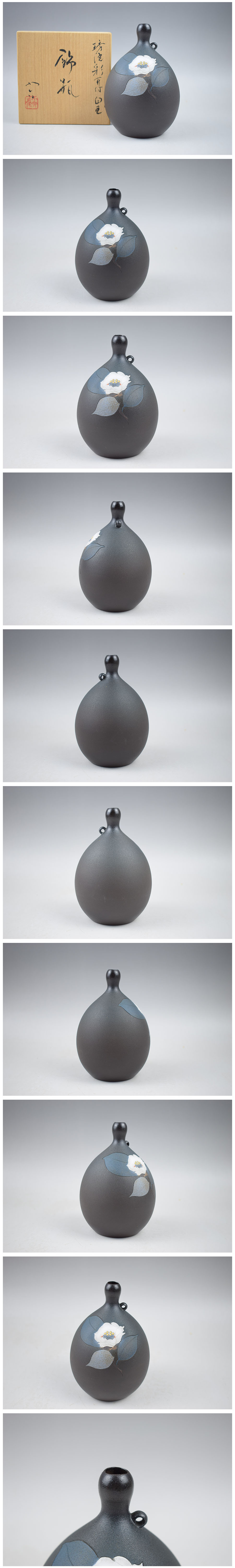 【林小六 京焼 琇洸彩耳付白玉飾瓶 共箱 真作保証】