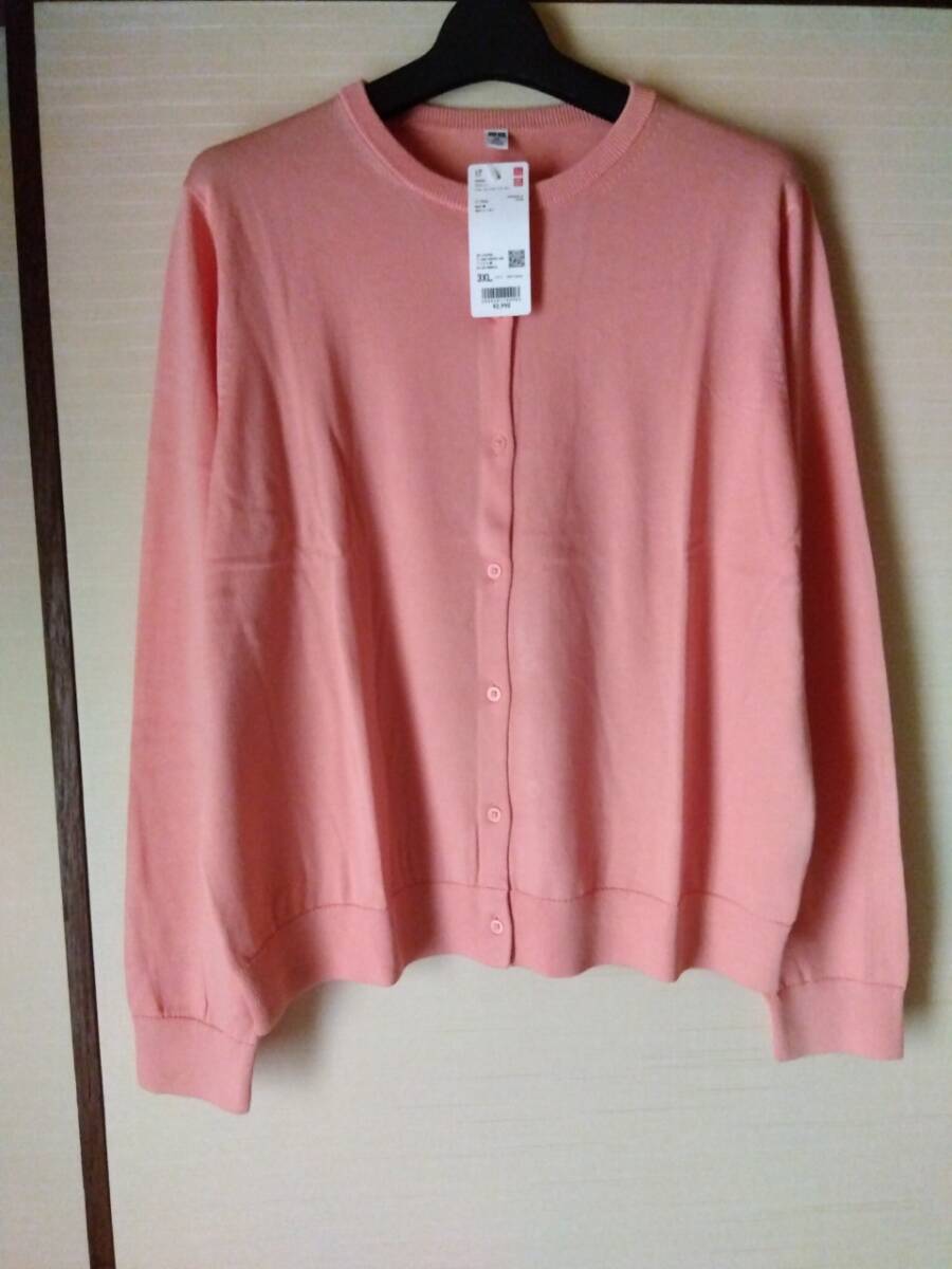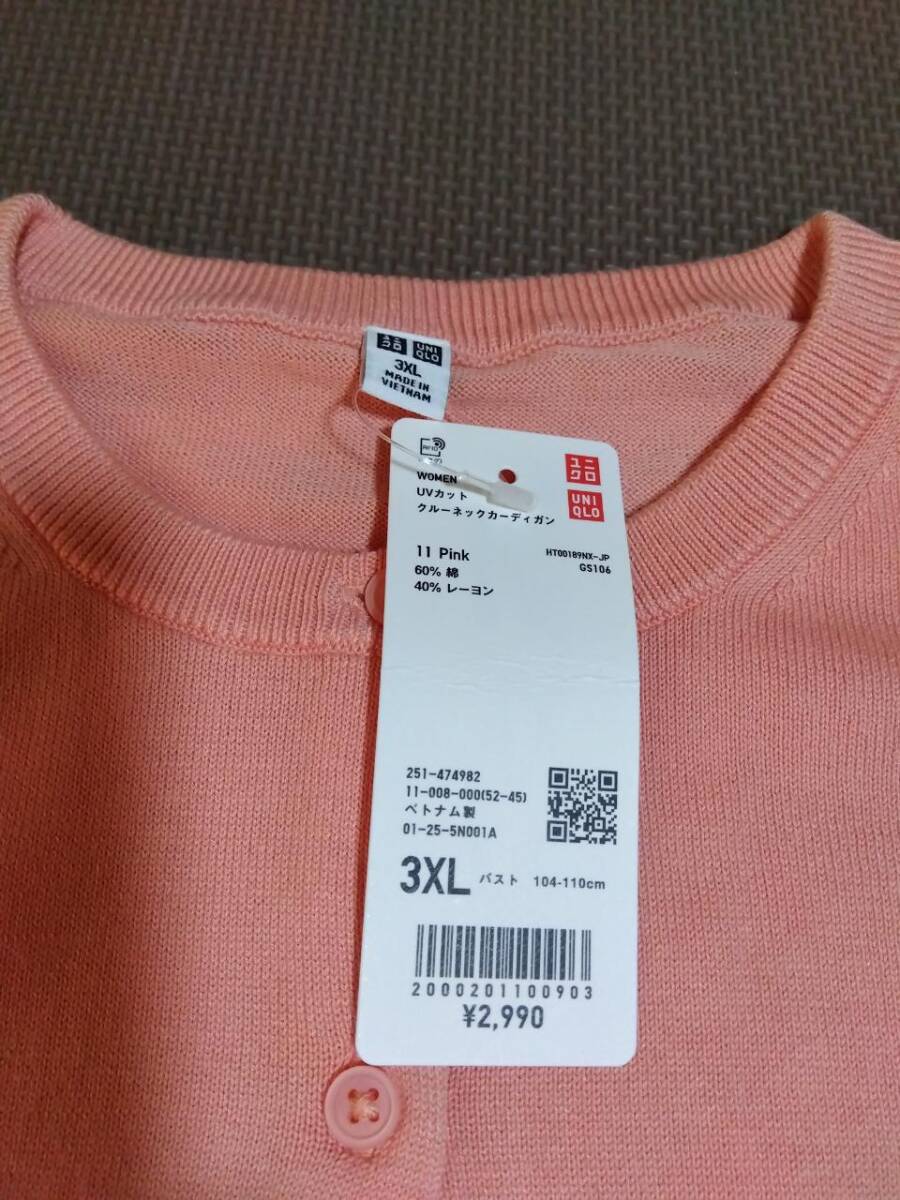 3XL/ピンク/新品/UNIQLO ユニクロ/レディース UVカット クルーネックカーディガン 長袖 4L 大きいサイズ 春夏