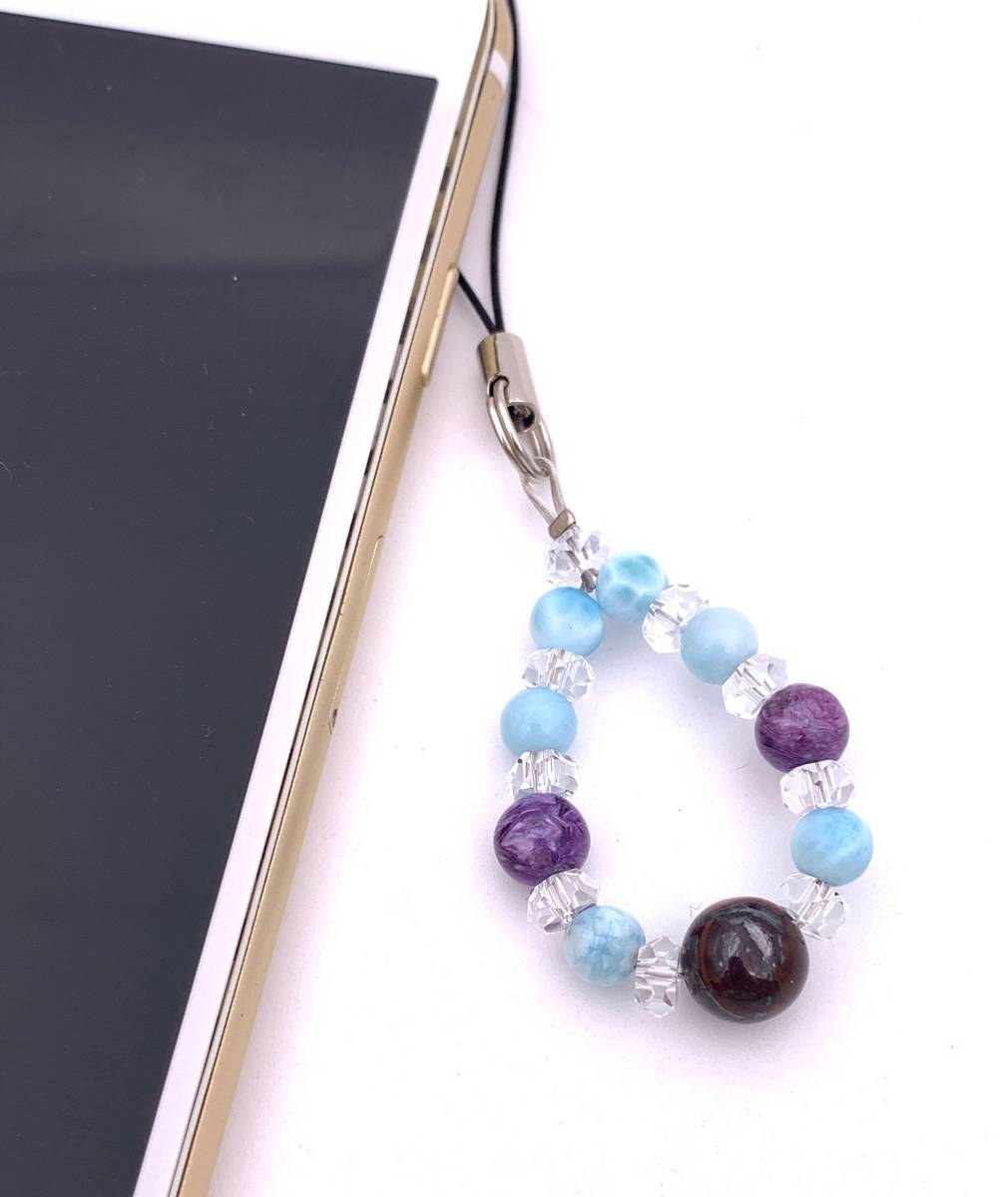 世界3大ヒーリングストーン☆天然石スギライト&ラリマー&チャロアイトのストラップ