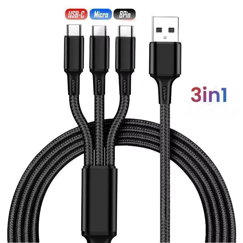 マルチ 急速充電 充電ケーブル 60W 3A 3in1 1.2m 1本 ブラック色