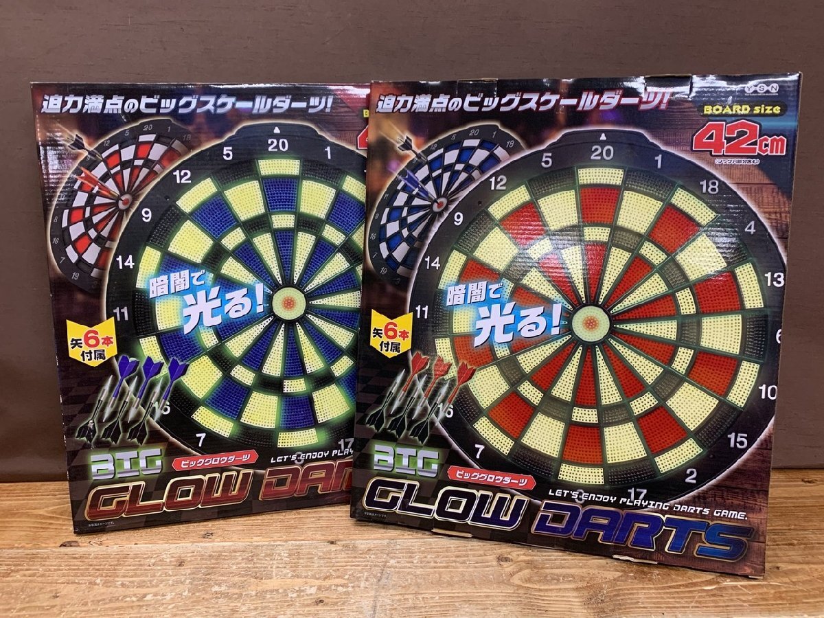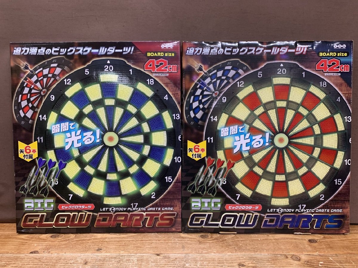 【N2-2784】未使用 2点セット ビッググロウダーツ BIG GLOW DARTS ダーツボード 約42cm 矢6本付属 暗闇で光る 東京引取可【千円市場】