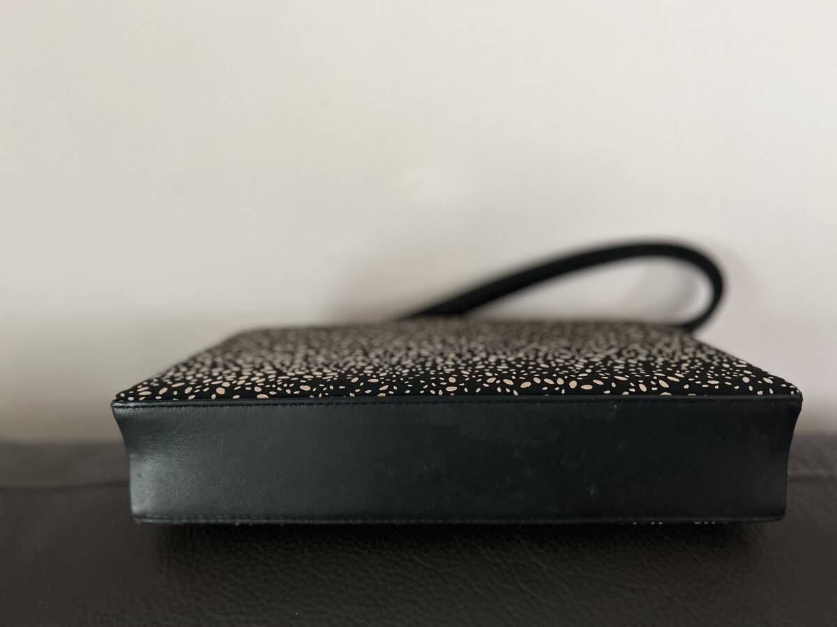 自宅保管の未使用品です。サイズは横幅最大27㎝、高さ14、5㎝、奥行き6㎝。(素人採寸の為多少の誤差はお許しください。中に詰め物をして計測。)内側にファスナーポケット1個有り。同梱可能(3日以内)他にも出品していますので、ご覧ください