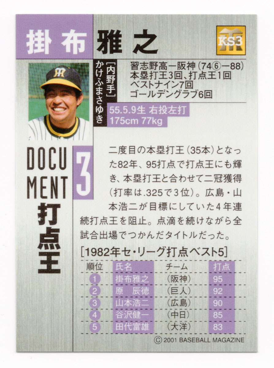 2001 LIMITED BBM 阪神 掛布スペシャル KS3 打点王 01 リミテッド タイガース