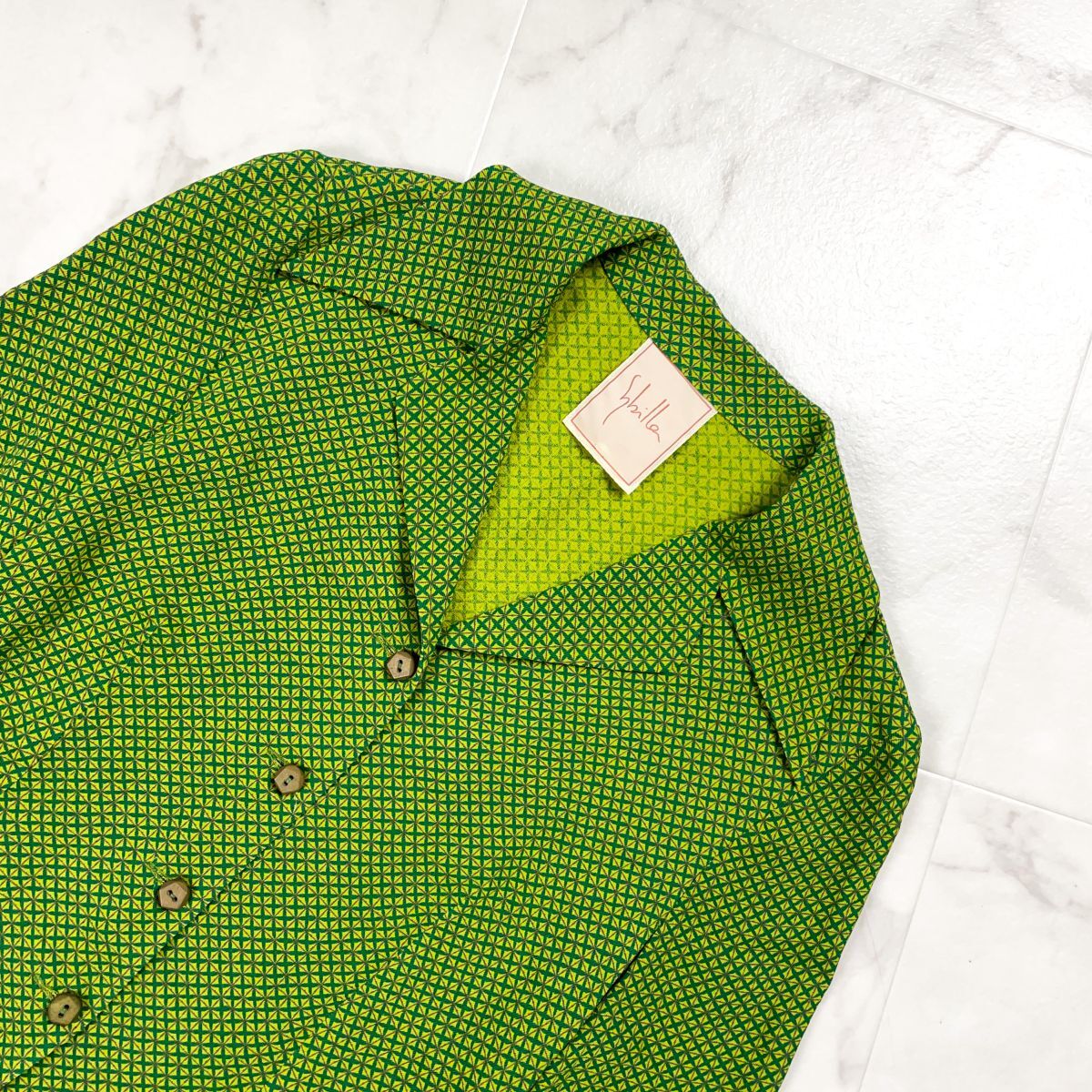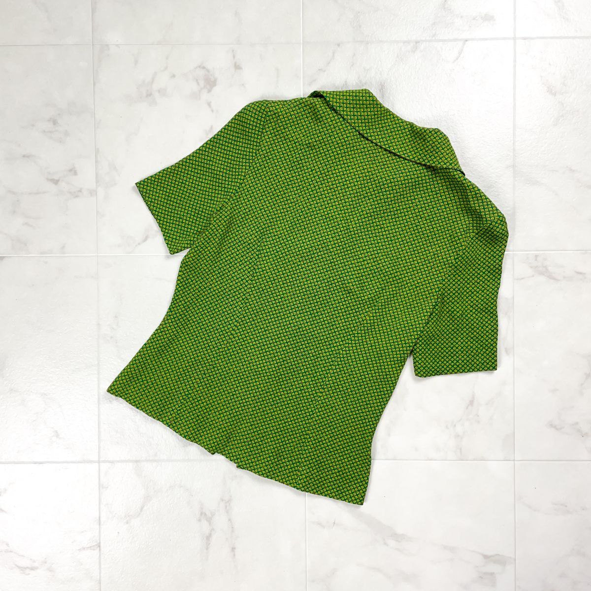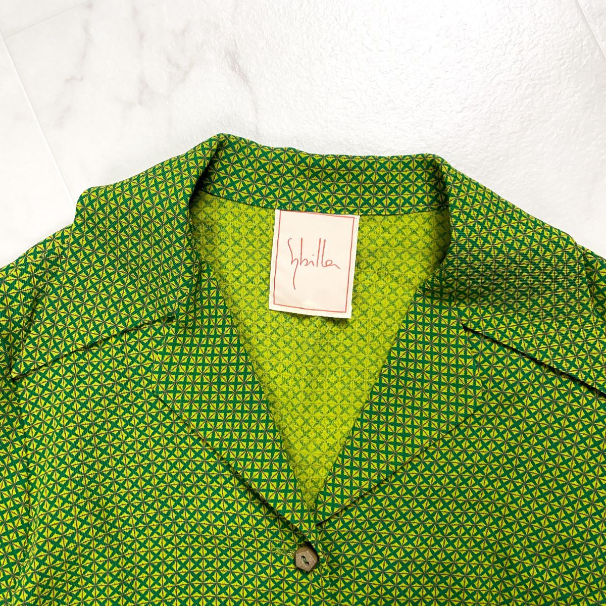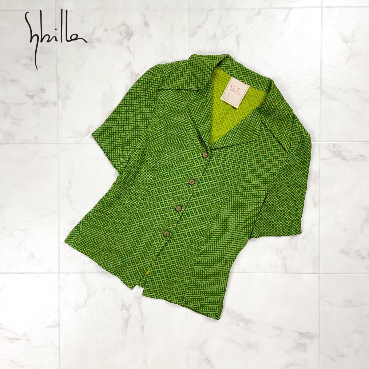 美品 Sybilla シビラ 総柄レーヨンシャツ 半袖 薄手 ブラウス 開襟 オープンカラー レディース 緑 グリーン サイズ40*HD334