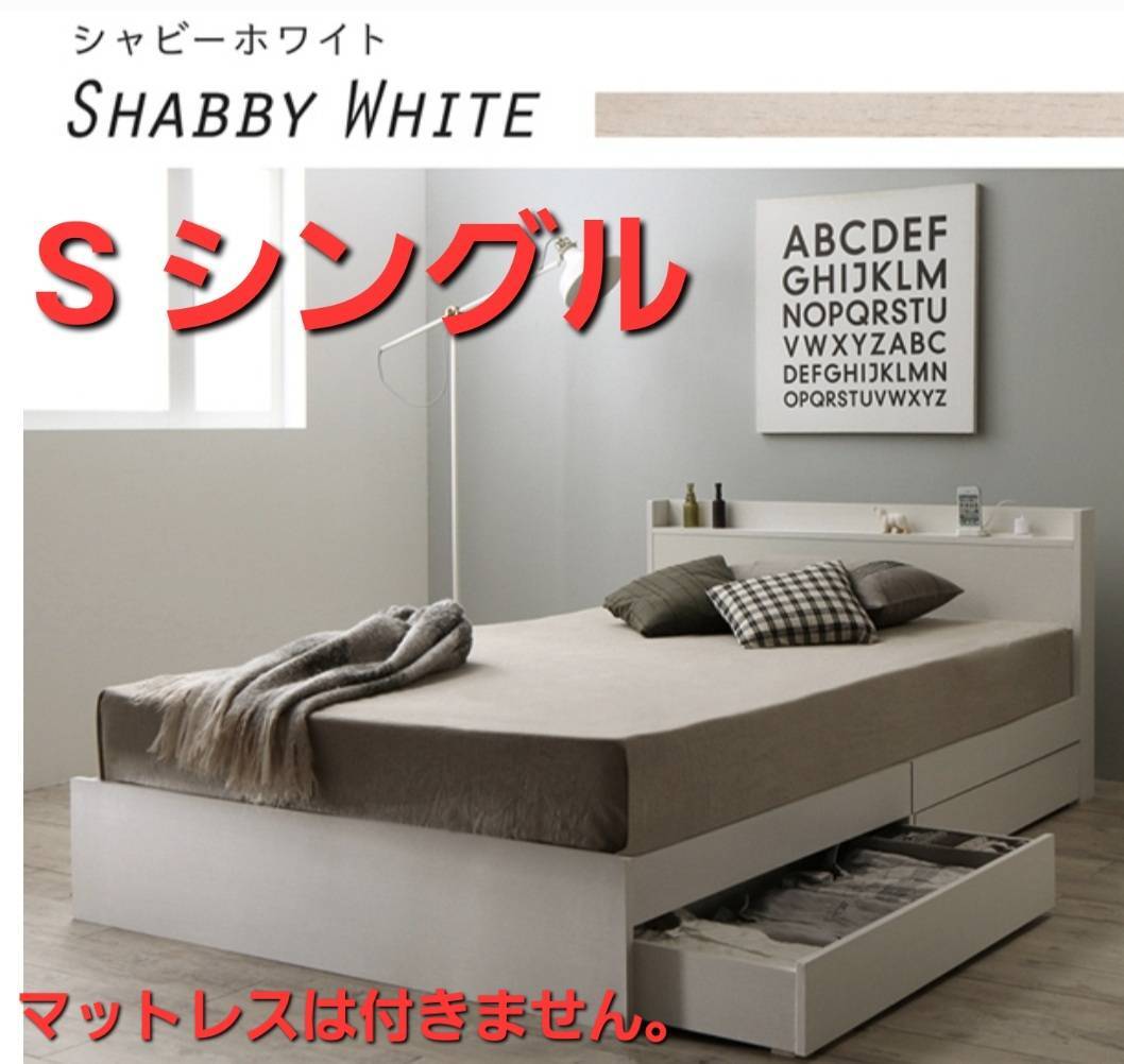 フレームのみ【アウトレット品】シングルベッド・2杯収納コンセント付・シャビーホワイト