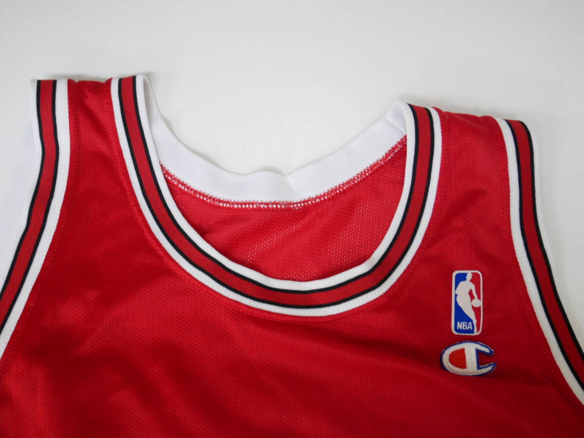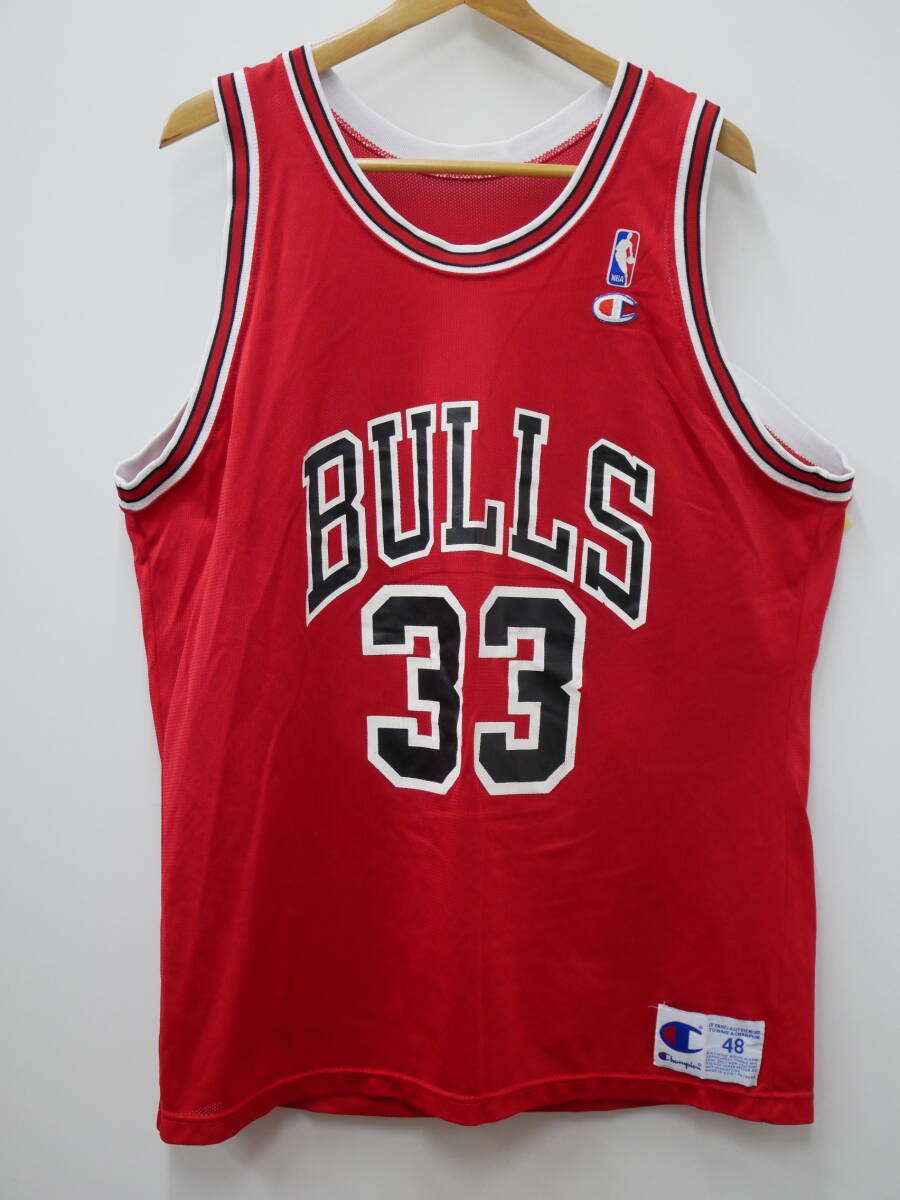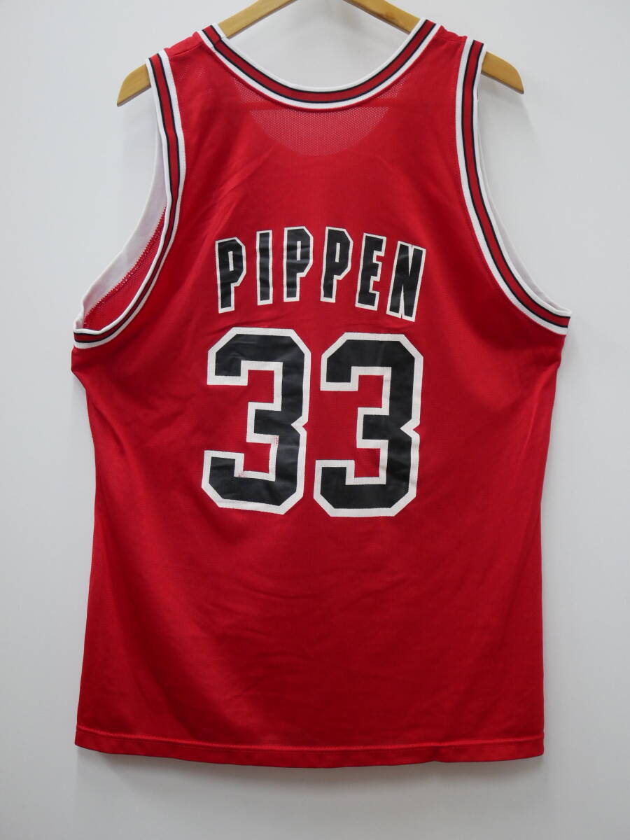 37W シカゴブルズ ピッペン ユニフォーム NBA Bulls Pippen 90s Champion製 赤 USA製 ゲームジャージ ビンテージUSA古着 ※5