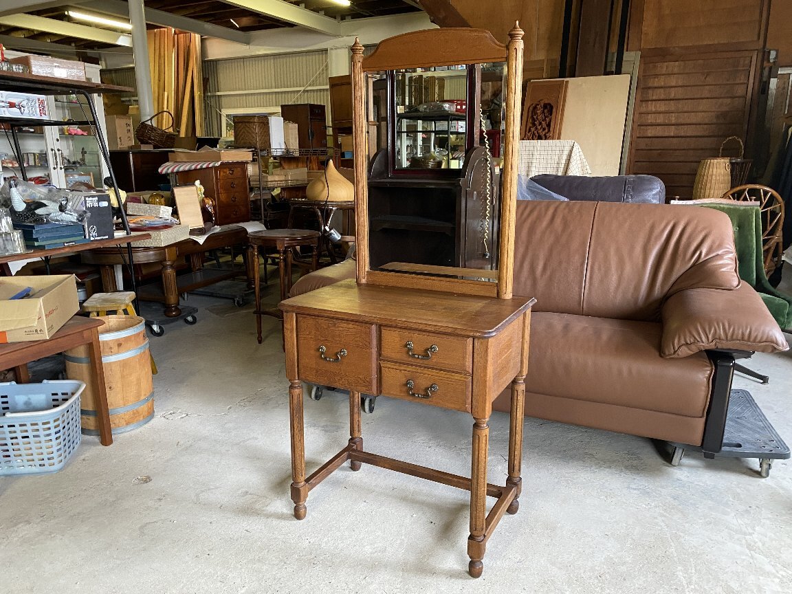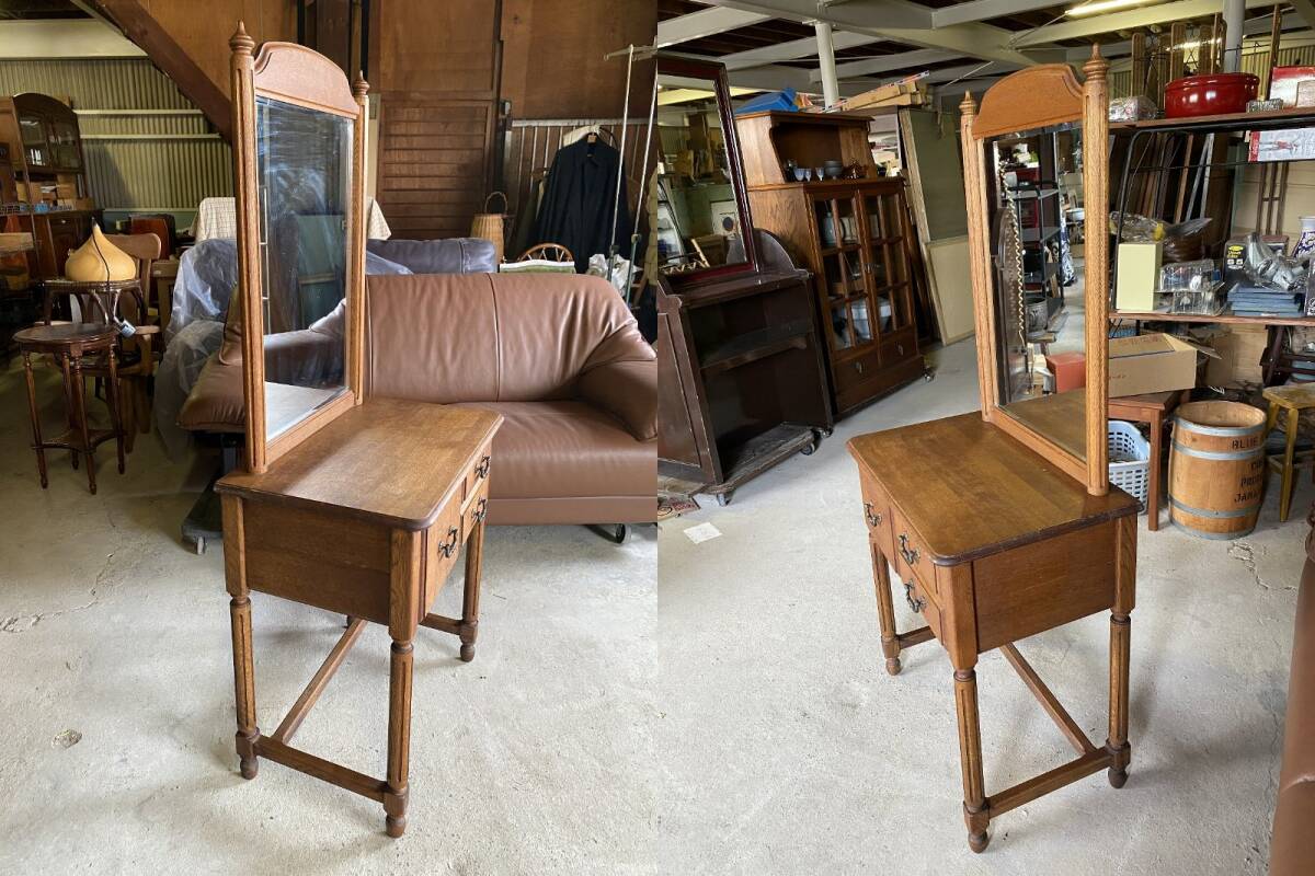 オーク材に面取りされたミラーが入った洒脱なドレッサーです。
