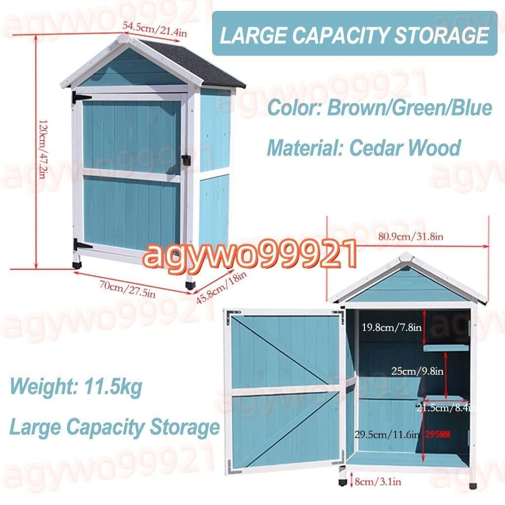 木製ガーデンロッカーは屋根、屋外物置、ユーティリティ整理器、屋外テラスツール棚、芝生に傾斜している(青い)
