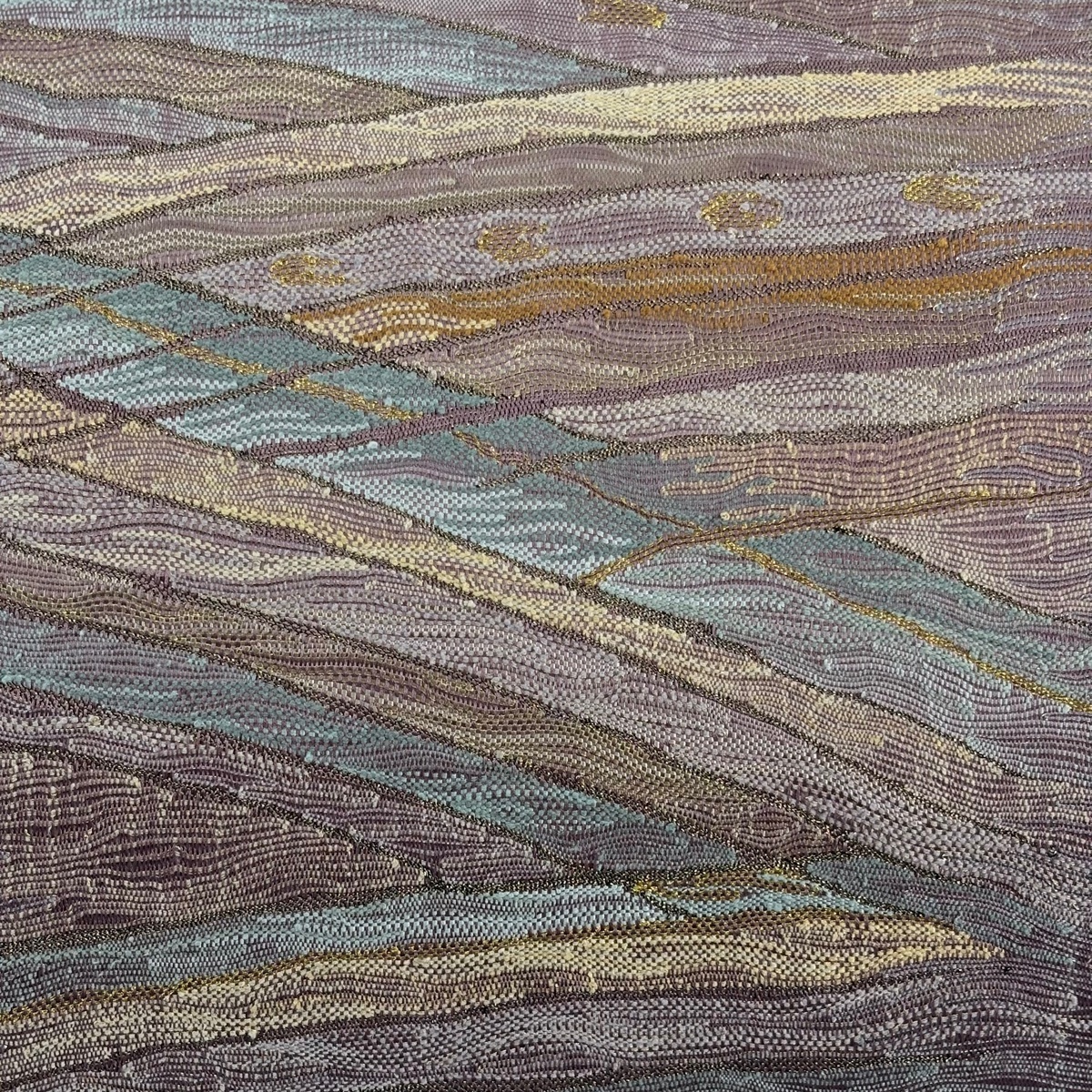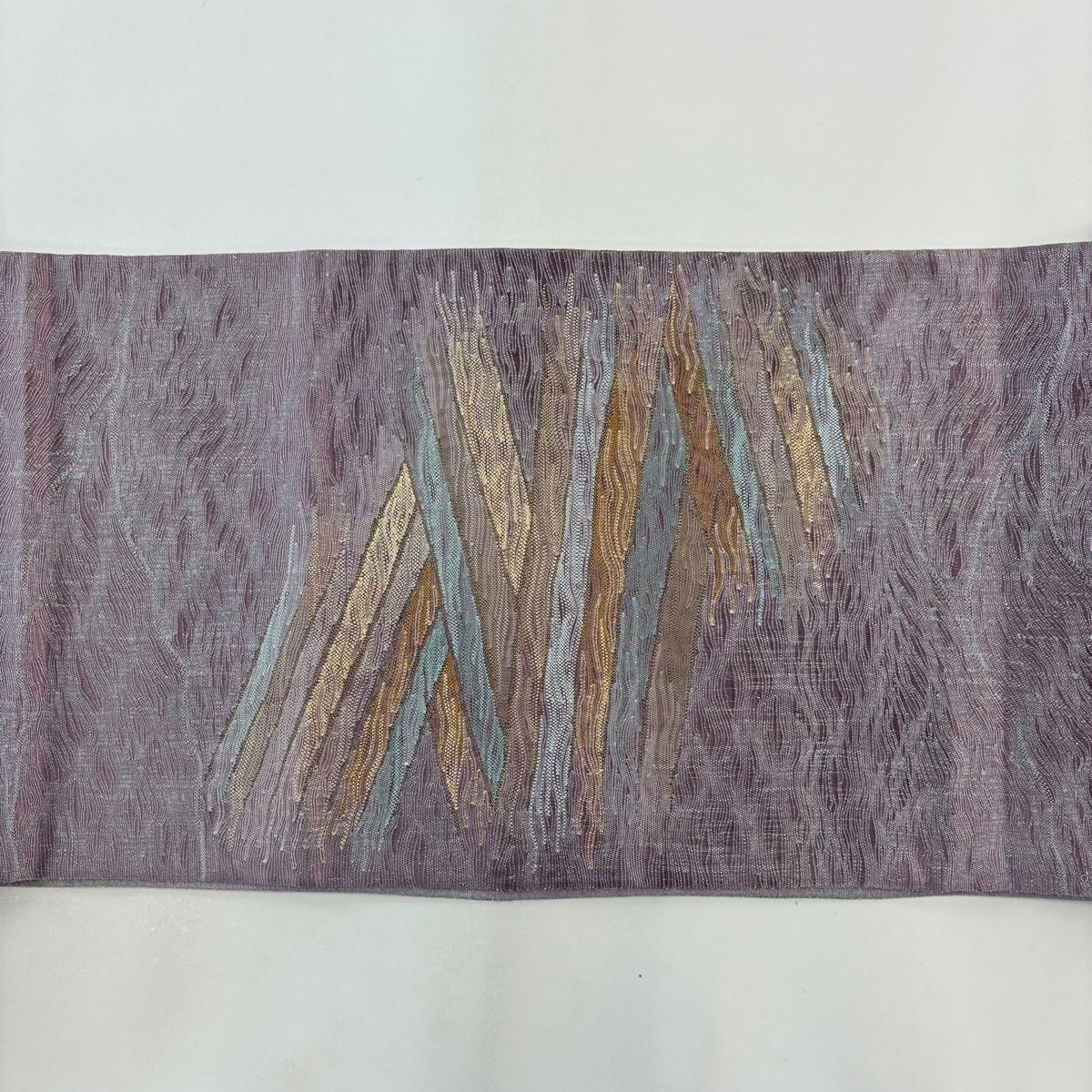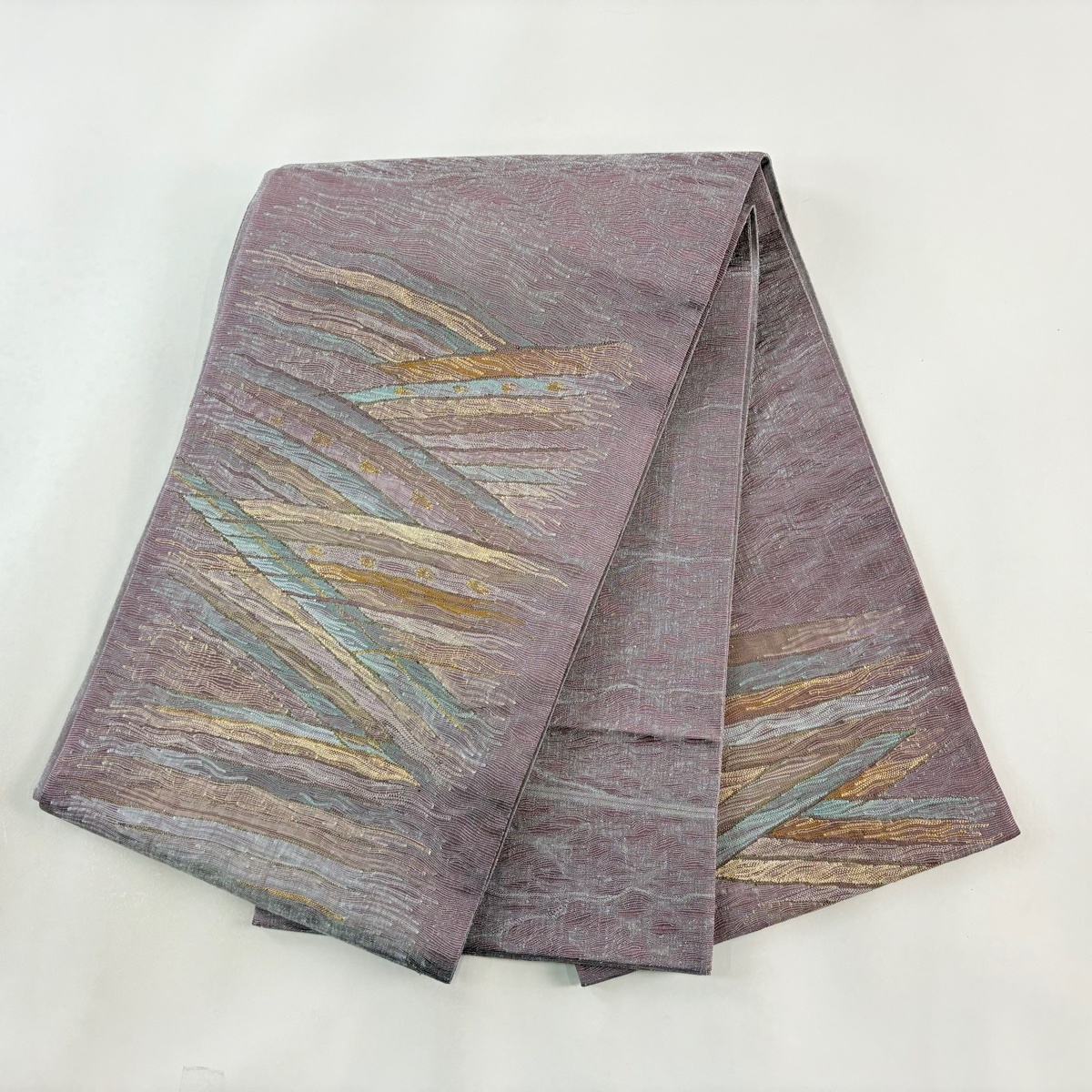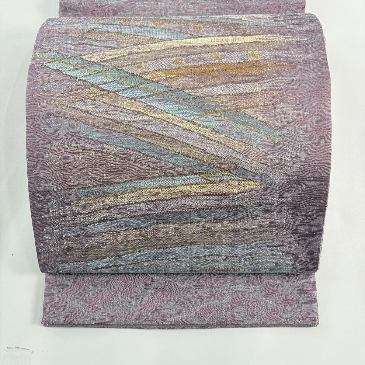 | 袋帯 秀品 幾何学模様 金銀糸 箔 灰紫 お太鼓柄 正絹 【中古】 |
