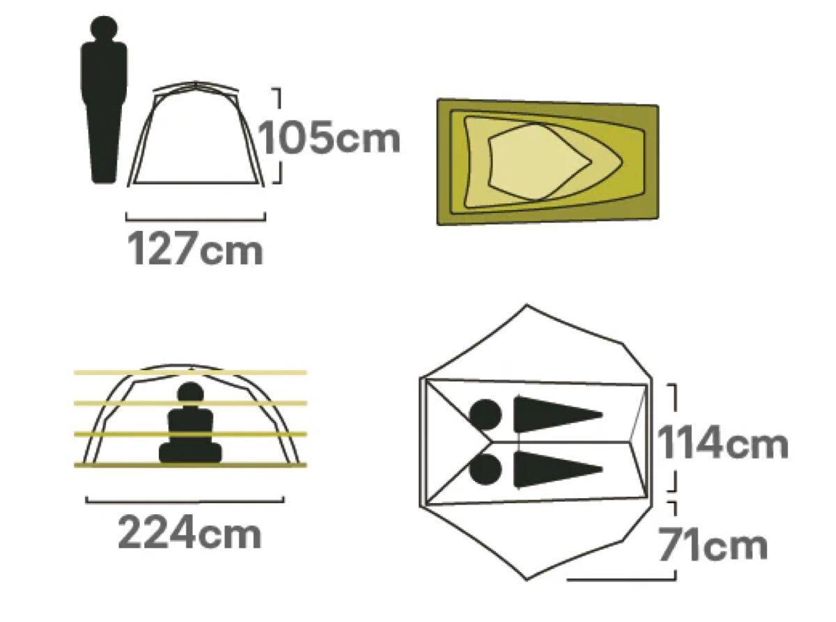 居住スペースを犠牲にせず軽量化するためにテーパード形状のデザインをフロア形状を採用、インナーテントのフロアを高く立ち上げたデザインでプライバシーと防水性を強化しました。