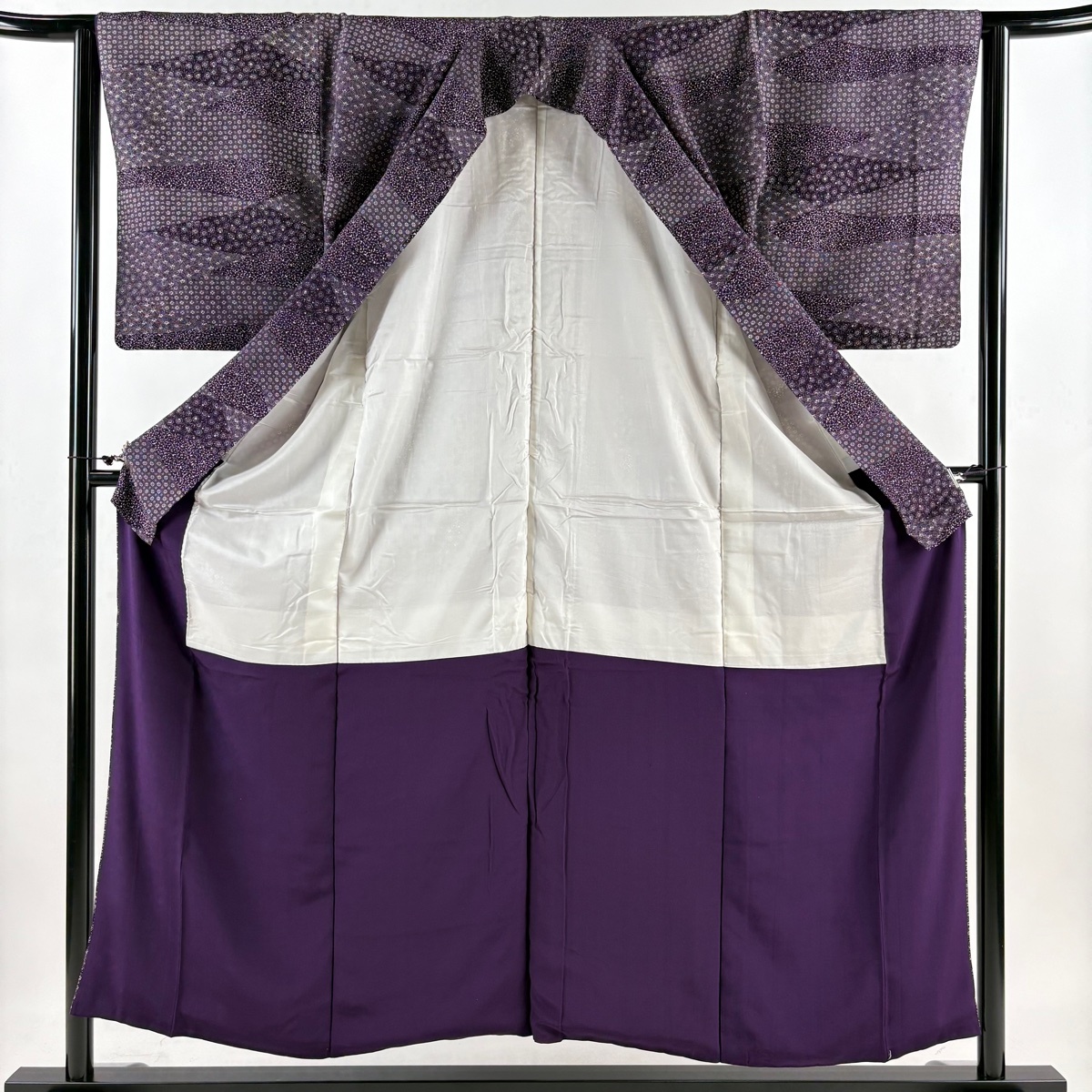 | 江戸小紋 秀品 小花 寄せ柄 濃紫 袷 身丈153 裄丈64 M 正絹 【中古】 |