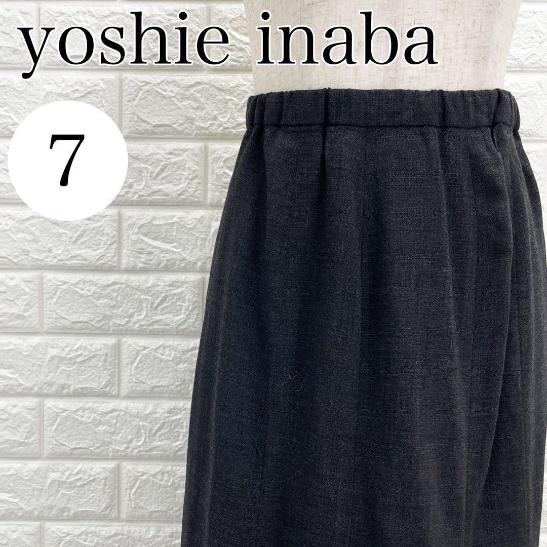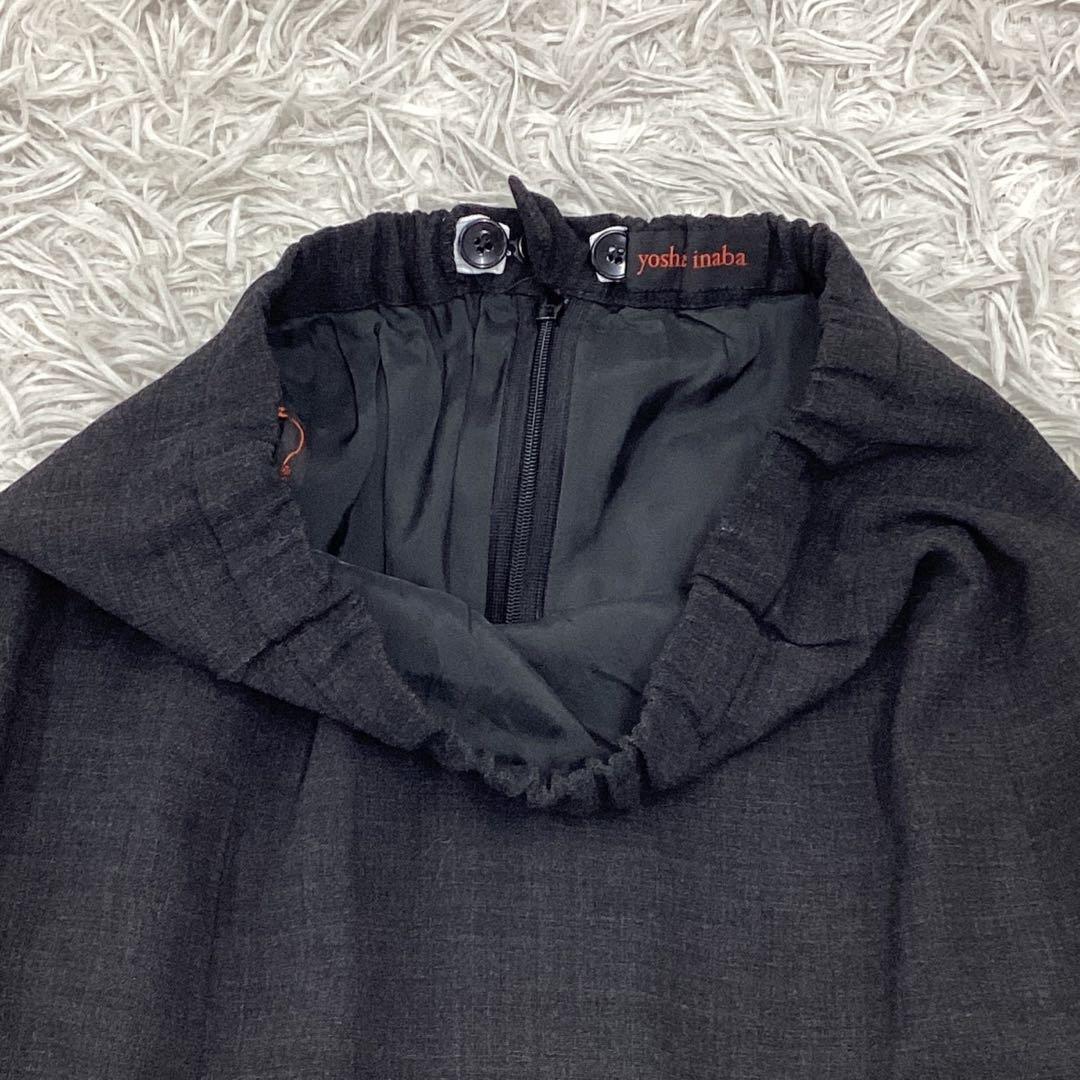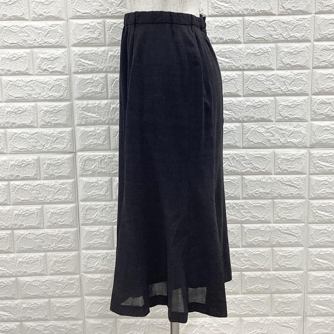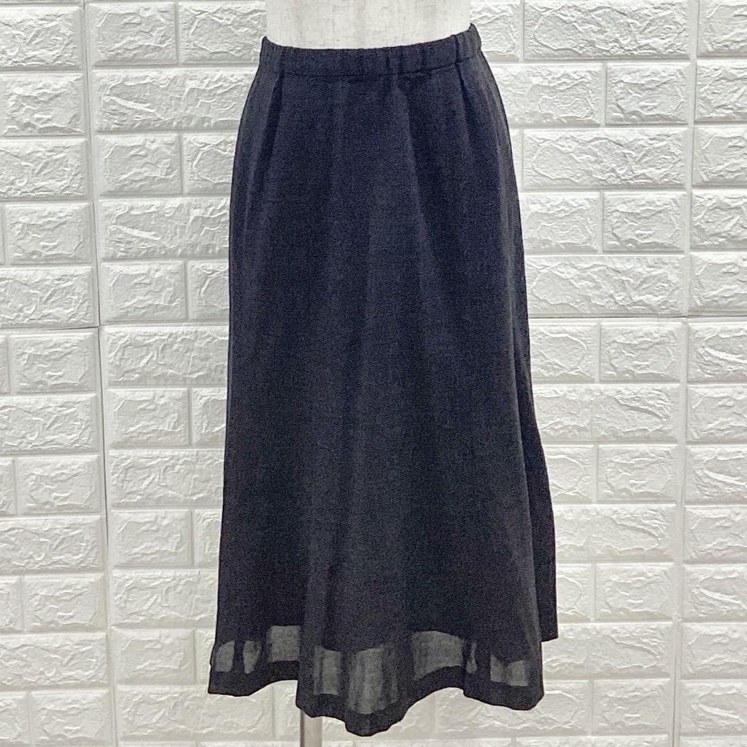 【AA3742】 yoshie inaba ヨシエイナバ フレアスカート ミドル丈 ブラック 透け感 レディース ウエストゴム エレガント
