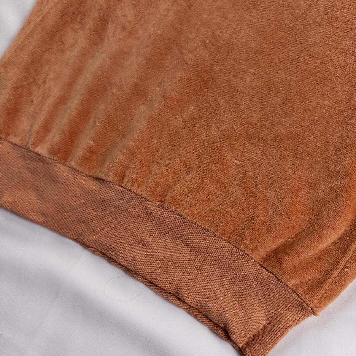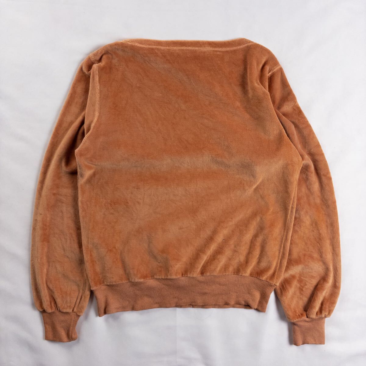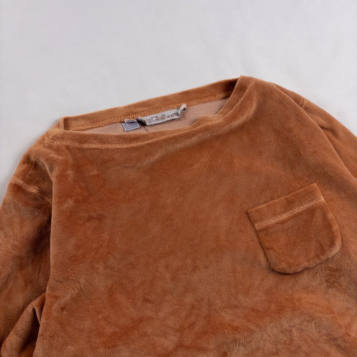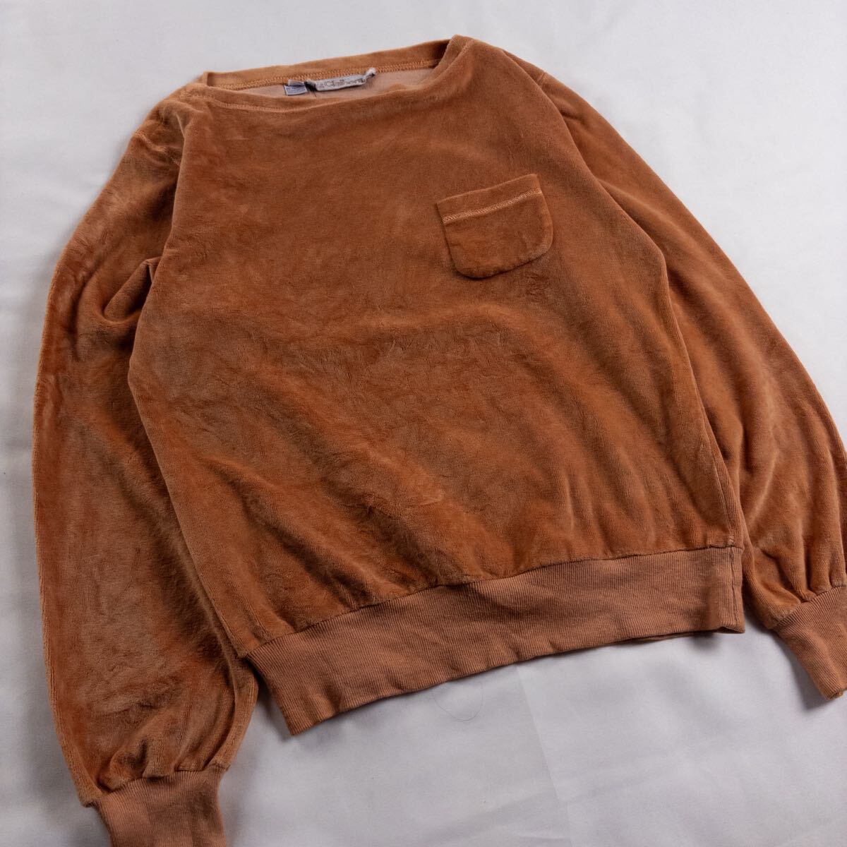 US Vintage 90s Liz Claiborne コットン76% ポリエステル24% 起毛 ベロア ベルベット 胸ポケット 単色 プレーン オレンジ リブ ロンT カットソー