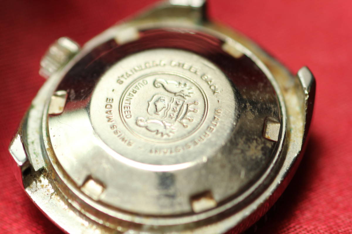 | 自動巻き腕時計です。 ●ケースサイズW28mm(リューズを含まないサイズ) ●ベルト取付幅 約13mm ●素材 風 防…アクリルガラス ●出品前に動作確認した動作品を出品しております。 振ると動作しますがすぐに止まります。 日差はタイムグラファーで平置き計測し計測不能で動作しております。 OH済ではなくOH歴もわかりませんので動作保証はできません。 ※評価に関して 評価をしていただければ評価をさせていただきます。 当方から評価を先に致しませんので予めご了承ください。 細かなチェックはしておりますが、小傷などがある場合がありますので写真を良くご覧頂き御自身の判断で入札して下さいますようよろしくお願い申し上げます。 ご入札、落札後のキャンセルは承りませんのでご了承下さいませ。 評価の悪い方は当方判断で入札を取り消す場合がございます。 御入札前に下記注意事項をお読み頂き、ご理解頂いた方のみ御入札ください。 ☆現状動作品でありますが、動作不良がありますのでオーバーホール前提でのご購入とさせていただきます。 当方修理、修理費用の負担は一切致しません。 ☆配送中の破損、故障は責任を負えませんので不安な方は補償付きの配送をお選びください。 Q&A Q.日差が商品説明と違う・時計が動作しなくなった・動作しない。 A.お近くのアンティーク専門の時計店またはネットで時計店を検索し修理依頼してください。 Q.針がずれている.リューズが抜けた.ゼンマイが巻けなくなったなどのトラブル全般 A.お近くのアンティーク専門の時計店またはネットで時計店を検索し修理依頼してください。 Q.ベルトのサイズが合わない。 A.ご自身でベルトを交換していただくか時計店にて交換してください。 Q.開封したら風防が外れていた・割れていた・針が取れていた。 A.配送中の故障、破損は責任を負いません。 配送業者に連絡してください、補償付きであれば賠償されます。 現在の時計の様な精度、防水機能はありませんのでご了承ください。 緩急針で日差の調整は可能ですが、故障の原因になりますので自己責任でお願いいたします。 ヴィンテージ時計に御理解の頂ける方のみご入札して頂けます様宜しくお願い致します。 神経質な方はご入札をお控え下さい。 ご入金は落札後3日以内で御願い致します。 ご入札いただきました際には、上記内容にご賛同いただいたものとさせていただきます。 | |||