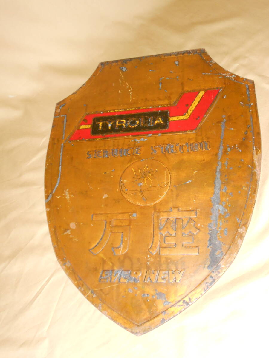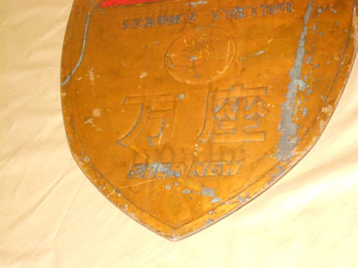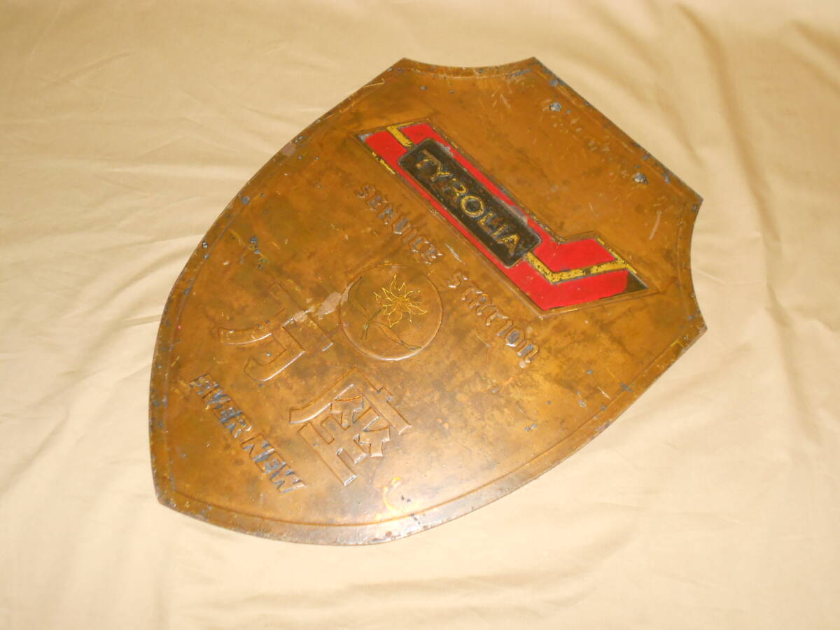 古い厚板鉄製看板★TYROLIA 万座 EVERVICE  エバニュー SERVICE STATION 両面 登山 キャンプ スキー場★企業物・非売品