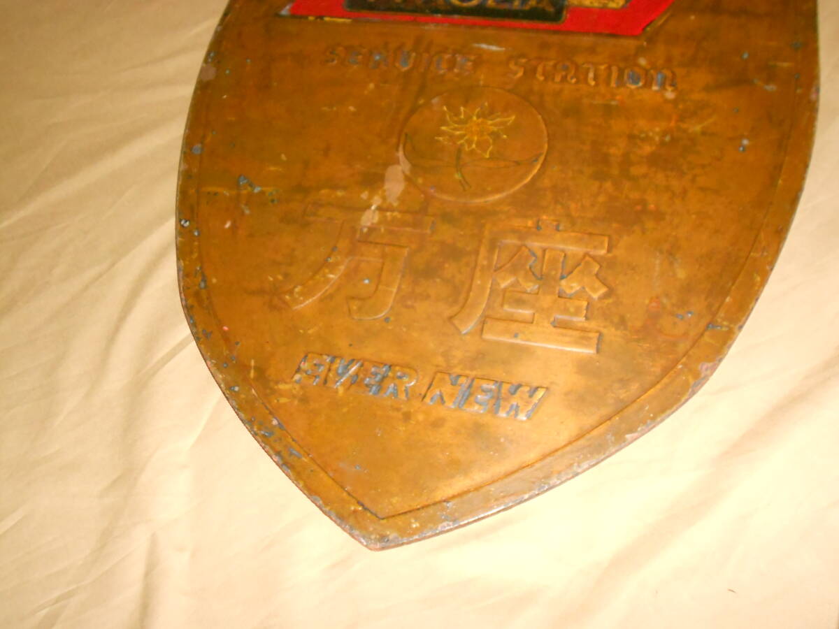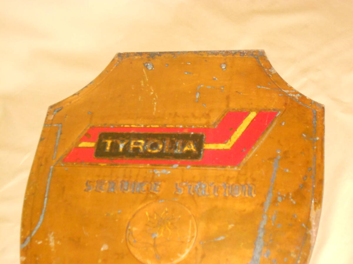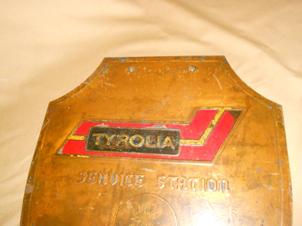 古い厚板鉄製看板★TYROLIA 万座 EVERVICE  エバニュー SERVICE STATION 両面 登山 キャンプ スキー場★企業物・非売品