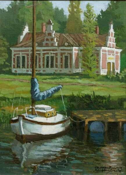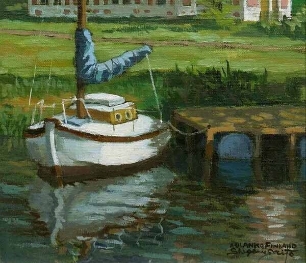*真作* 一陽会々員 肉筆原画 斎藤茂 三越取扱「白夜のアウランコ(フィンランド)」キャンバスに油彩 直筆サイン/SHIGERU SAITO/斉藤/絵画