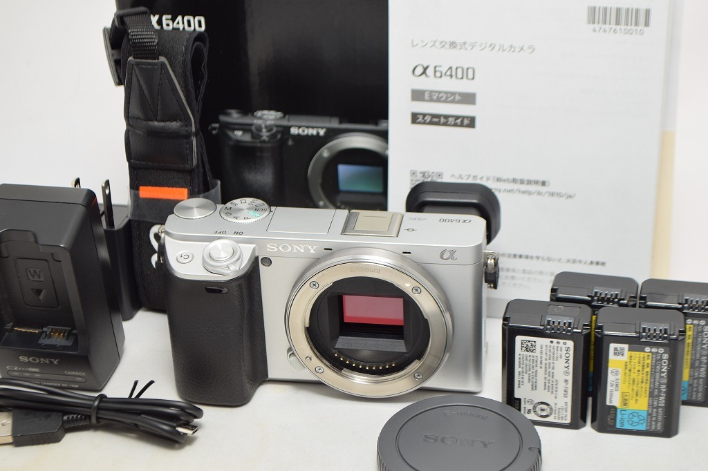 良品★SONY ソニー α6400 ボディ シルバー ILCE-6400★ショット数約37000回・元箱付・予備バッテリー付