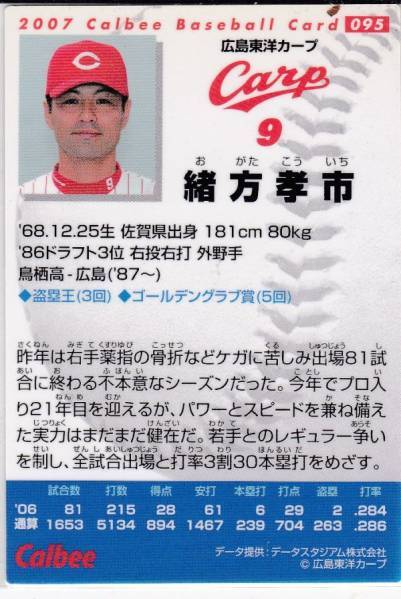 ●2007カルビー 【緒方 孝市】 BASEBALL CARD No.095:広島