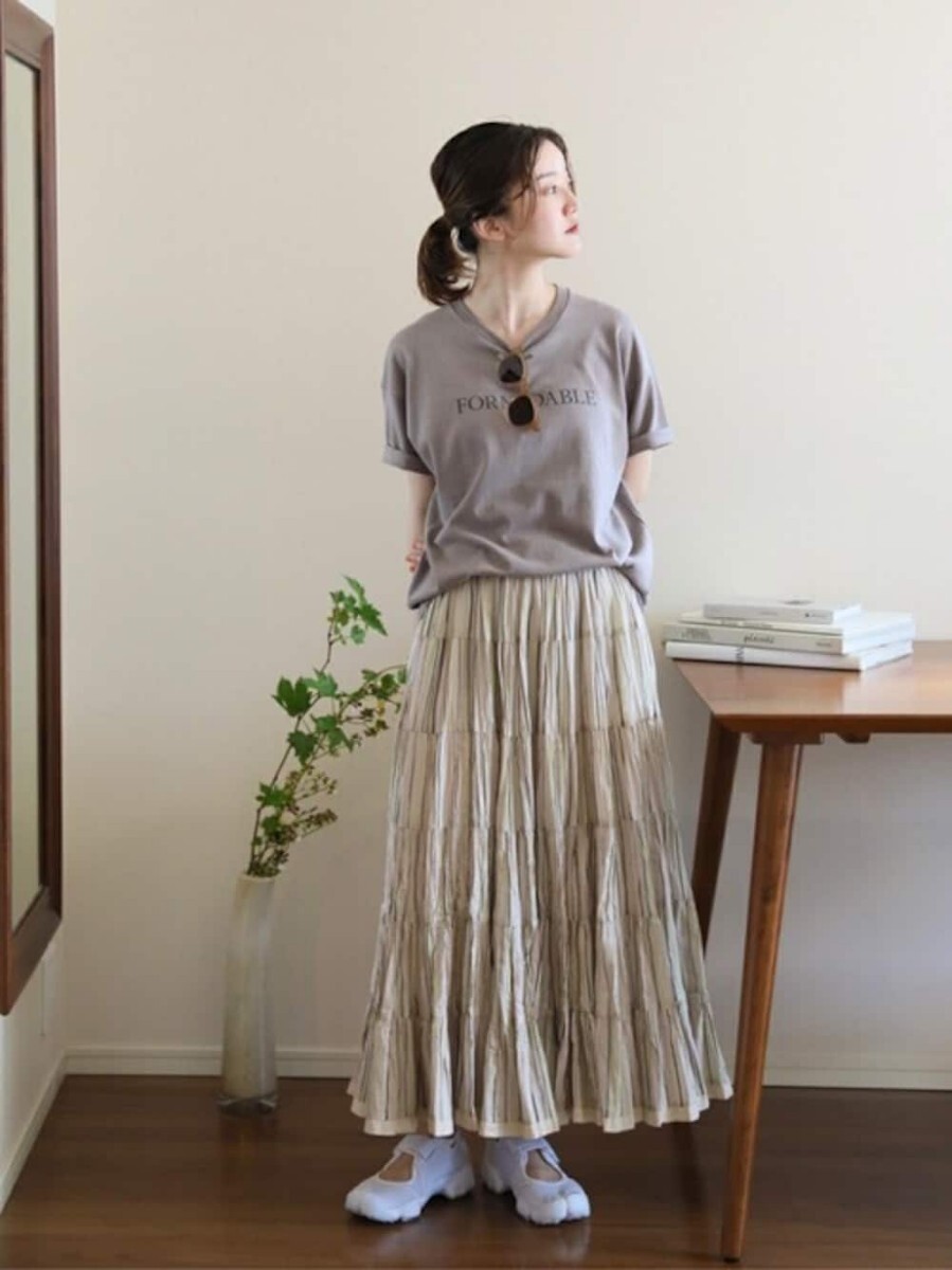 天竺素材を使用したロゴプリントTシャツ。 」とはフランス語で「素敵!すばらしい!」という意味です。 コットンコンパクト糸の生地を用い、毛羽が少なく綺麗な表面感が特徴。 バイオ加工を施しているので、ソフトな風合いに仕上がっています。 ベーシックなシルエットで、どんなアイテムにもマッチする万能なアイテムです。
