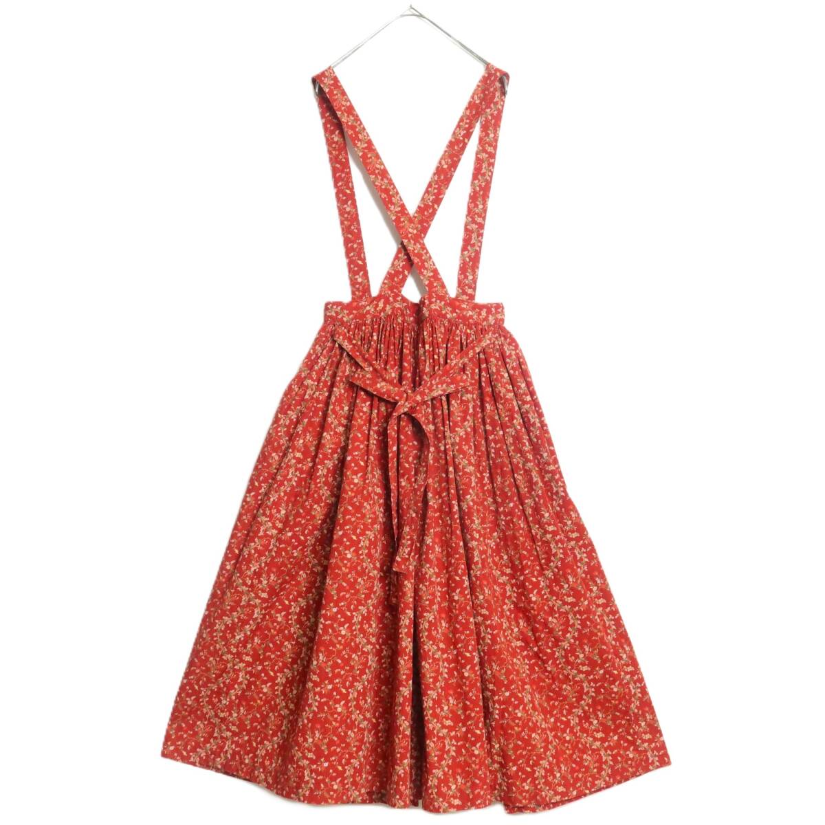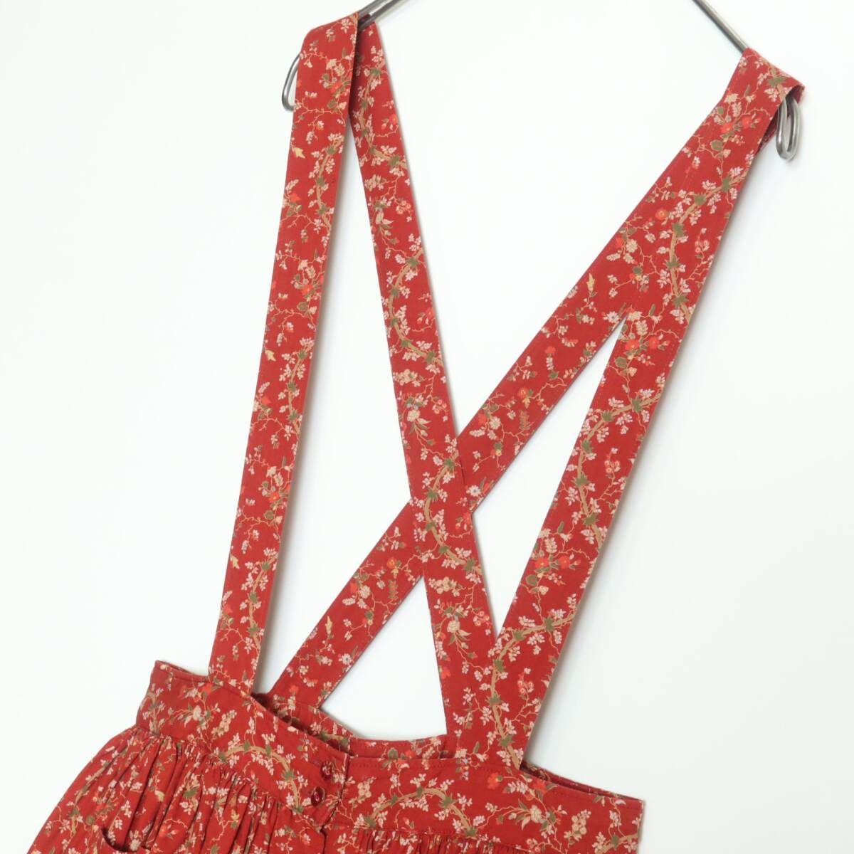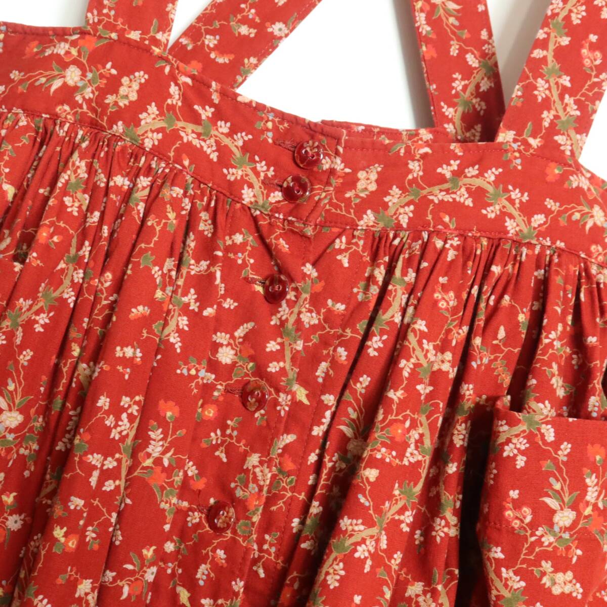 | 商品説明 | 【実寸約】ウエスト66スカート丈83総丈124(cm) 【サイズ表記】 なし。実寸をご参照くださいませ。 【素材】 綿100% 【状態】普通の使用感のあるお品物 ウエストを大きくするお直し跡あり 【デザイン】赤系 ギャザーたっぷりの肩ひも付きスカートです。 同じ柄の樹脂製ボタンがついたフロントオープンデザイン 薄手/小花柄・ウエストリボンベルト付き |