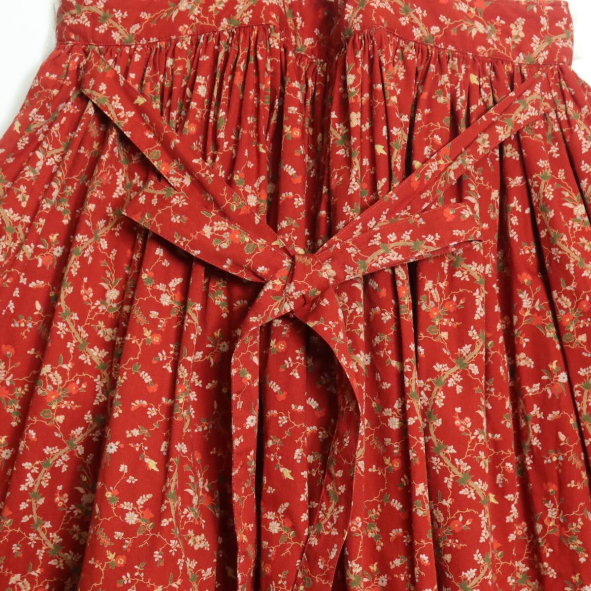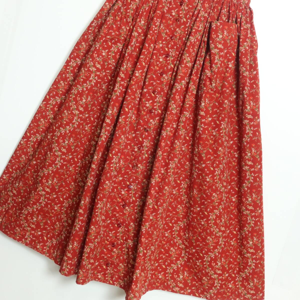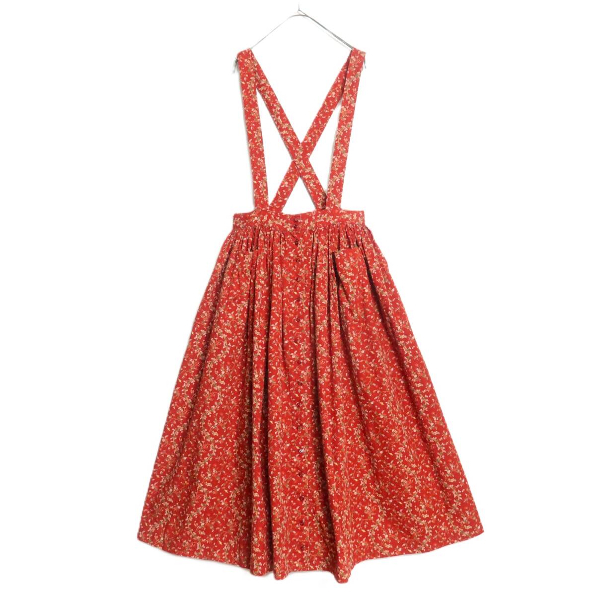 | 商品説明 | 【実寸約】ウエスト66スカート丈83総丈124(cm) 【サイズ表記】 なし。実寸をご参照くださいませ。 【素材】 綿100% 【状態】普通の使用感のあるお品物 ウエストを大きくするお直し跡あり 【デザイン】赤系 ギャザーたっぷりの肩ひも付きスカートです。 同じ柄の樹脂製ボタンがついたフロントオープンデザイン 薄手/小花柄・ウエストリボンベルト付き |