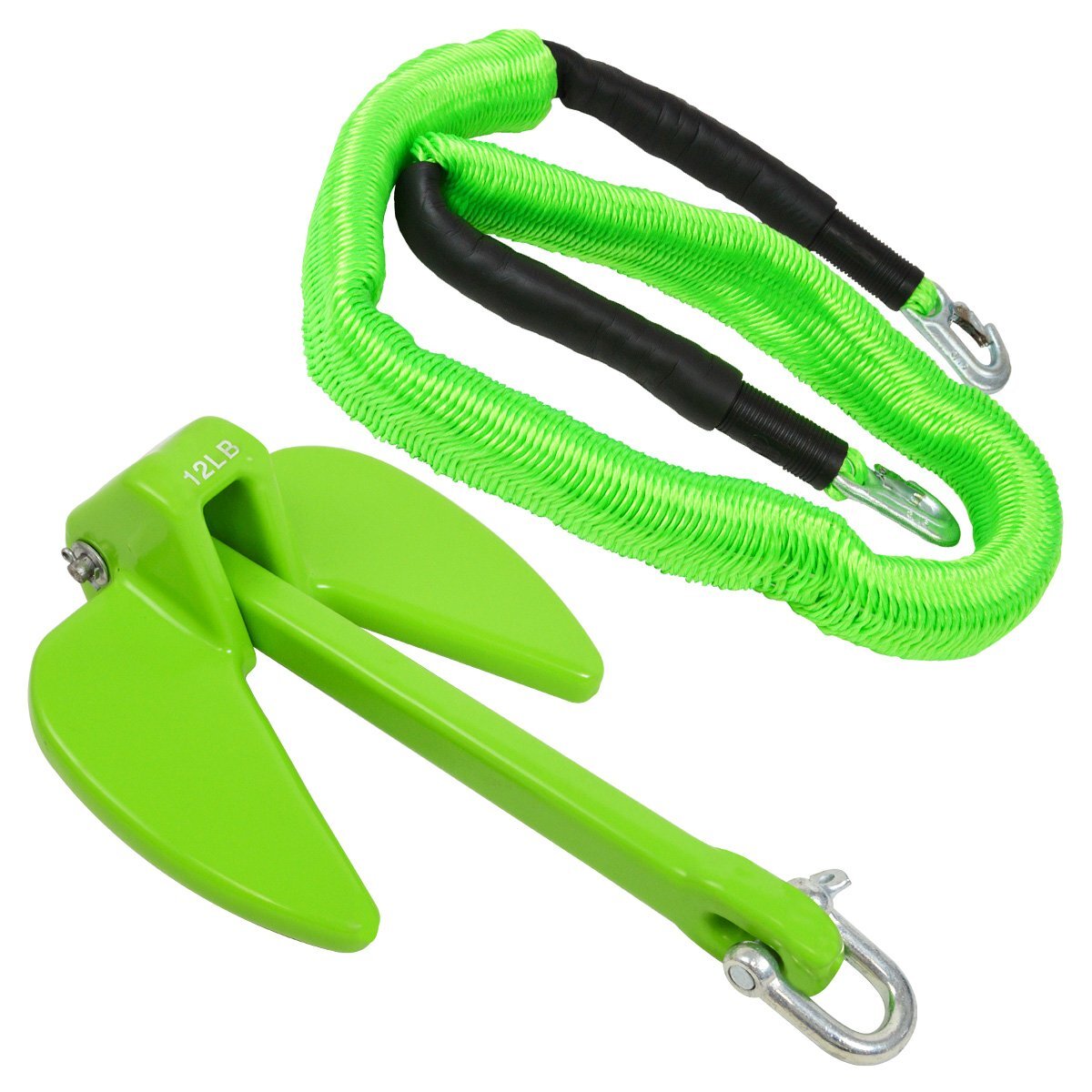 『伸縮ロープ/アンカーセット』ジェットスキー 爪型 アンカー 12LBS 5.5kg 緑 6M フロート のびのび アンカー ロープ 緑