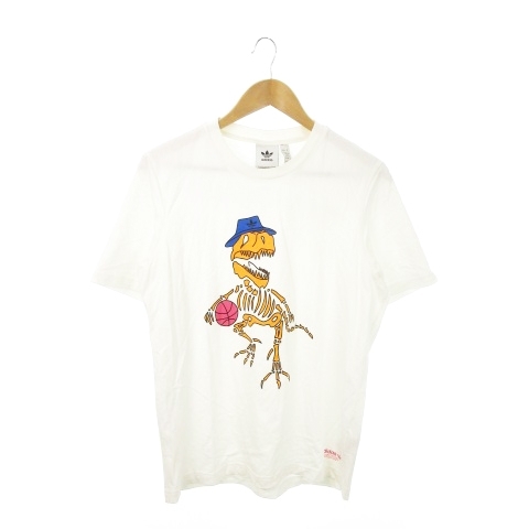 アディダスオリジナルス adidas originals Tシャツ カットソー ラウンドネック 半袖 プリント ロゴ トレフォイル M 白 ホワイト