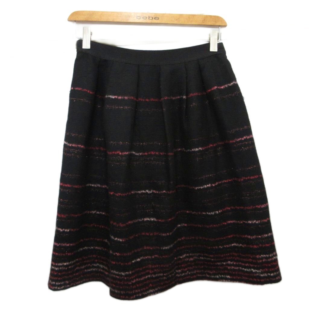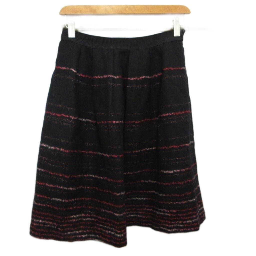アナイ ANAYI フレアスカート ひざ丈 ボーダー ラメ 38 M 黒 ブラック 11425-36-41-380 ■YHS4 レディース