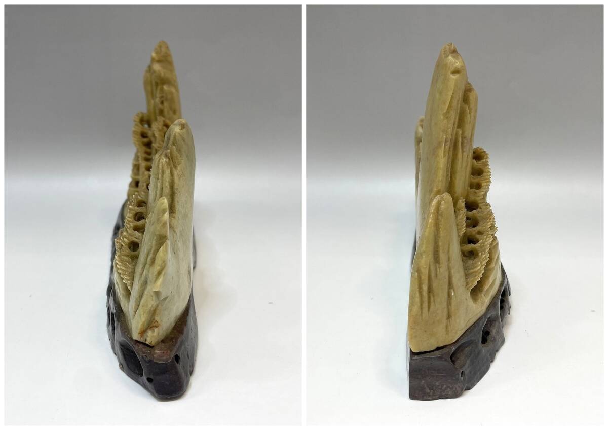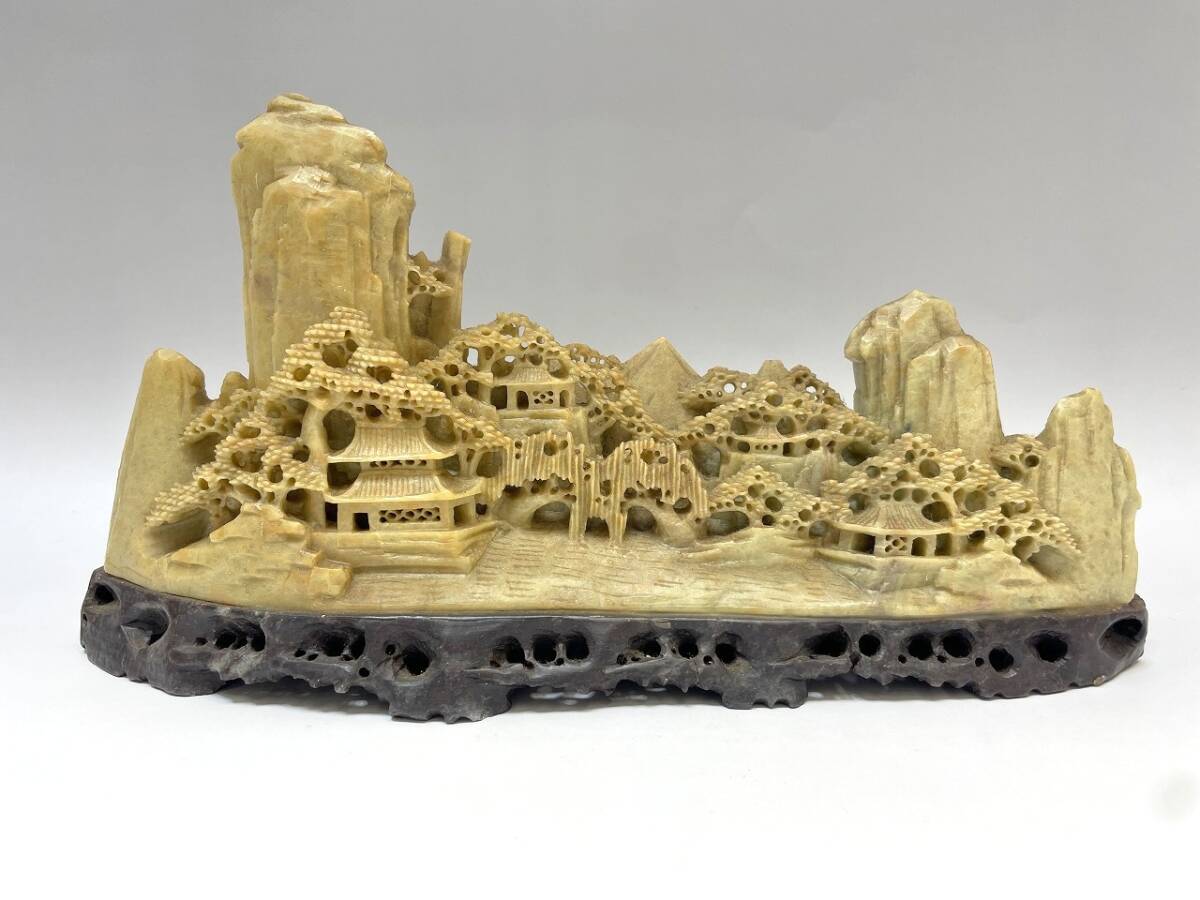 細密彫刻!中国美術 玉石 楼閣山水 置物 天然石 東洋彫刻 骨董 アンティーク